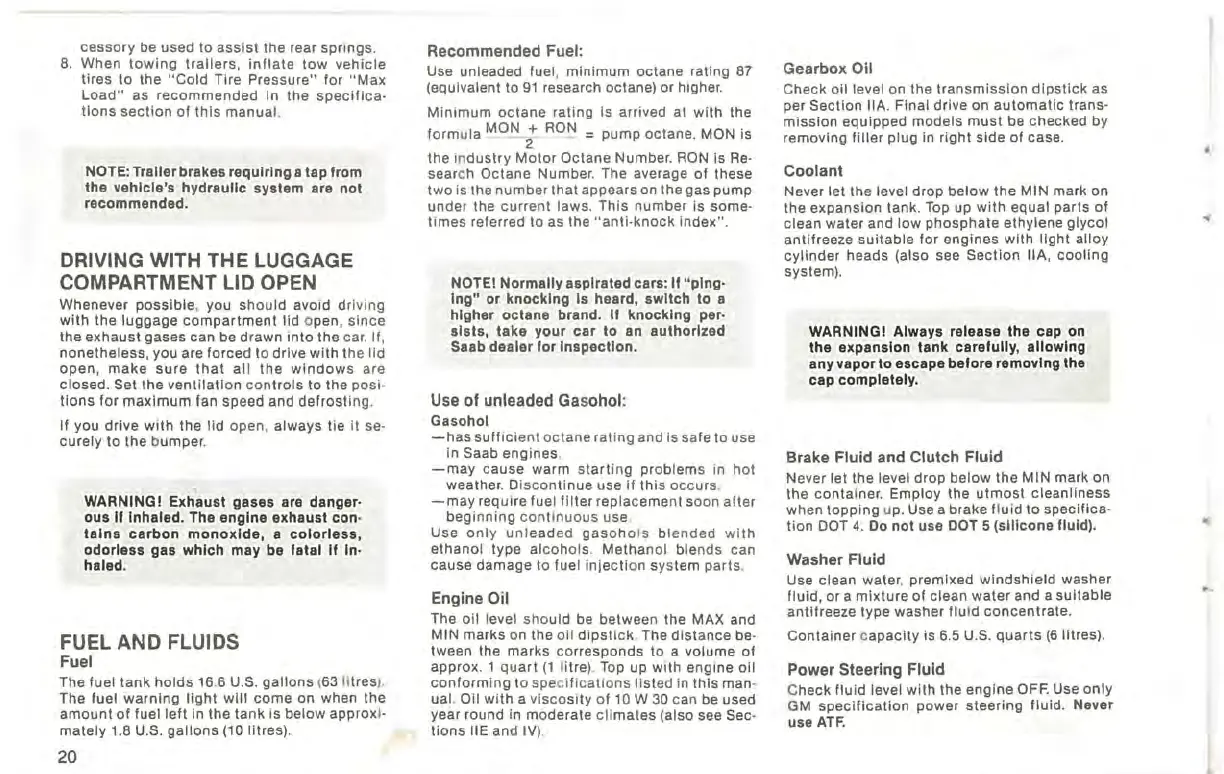 Saab 900 1983 - Fuel and Fluids; Fuel; Gasohol; Engine Oil