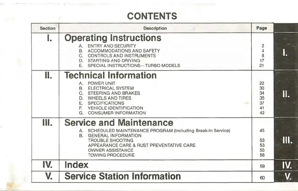 Saab 900 1983 - Table of Contents