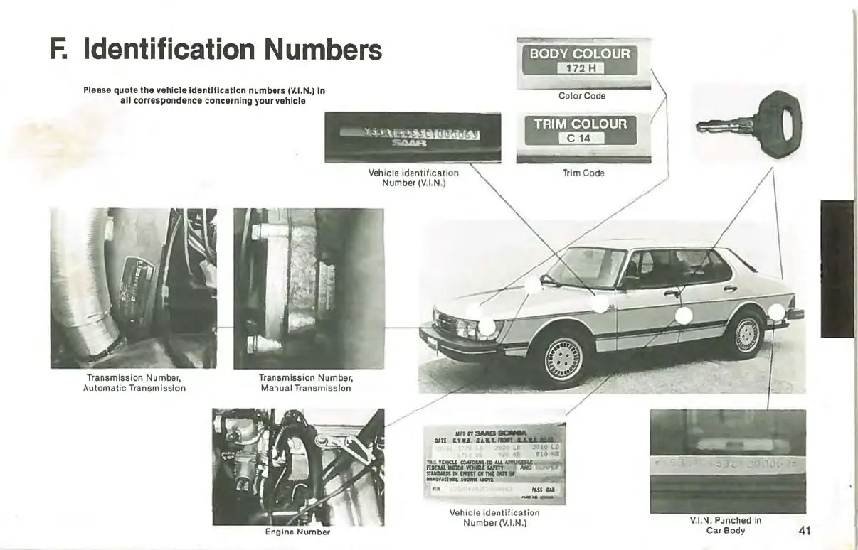 Saab 900 1983 - F. Identification Numbers; Vehicle Identification Number (V.I.N.); Body Colour; Trim Colour