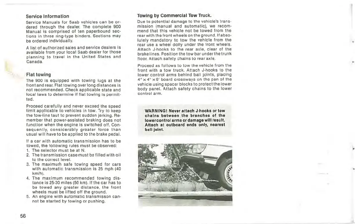 Saab 900 1983 - Service Information; Flat Towing; Towing by Commercial Tow Truck