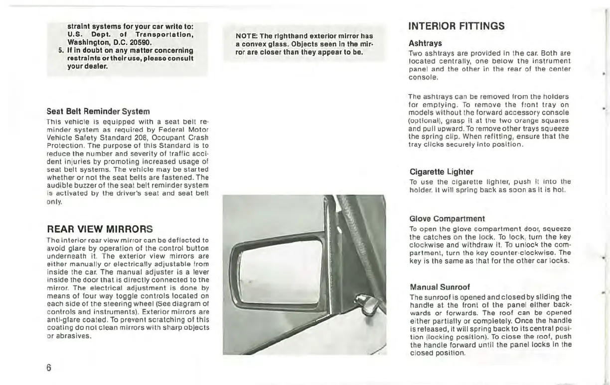 Saab 900 1983 - Rear View Mirrors; Interior Fittings