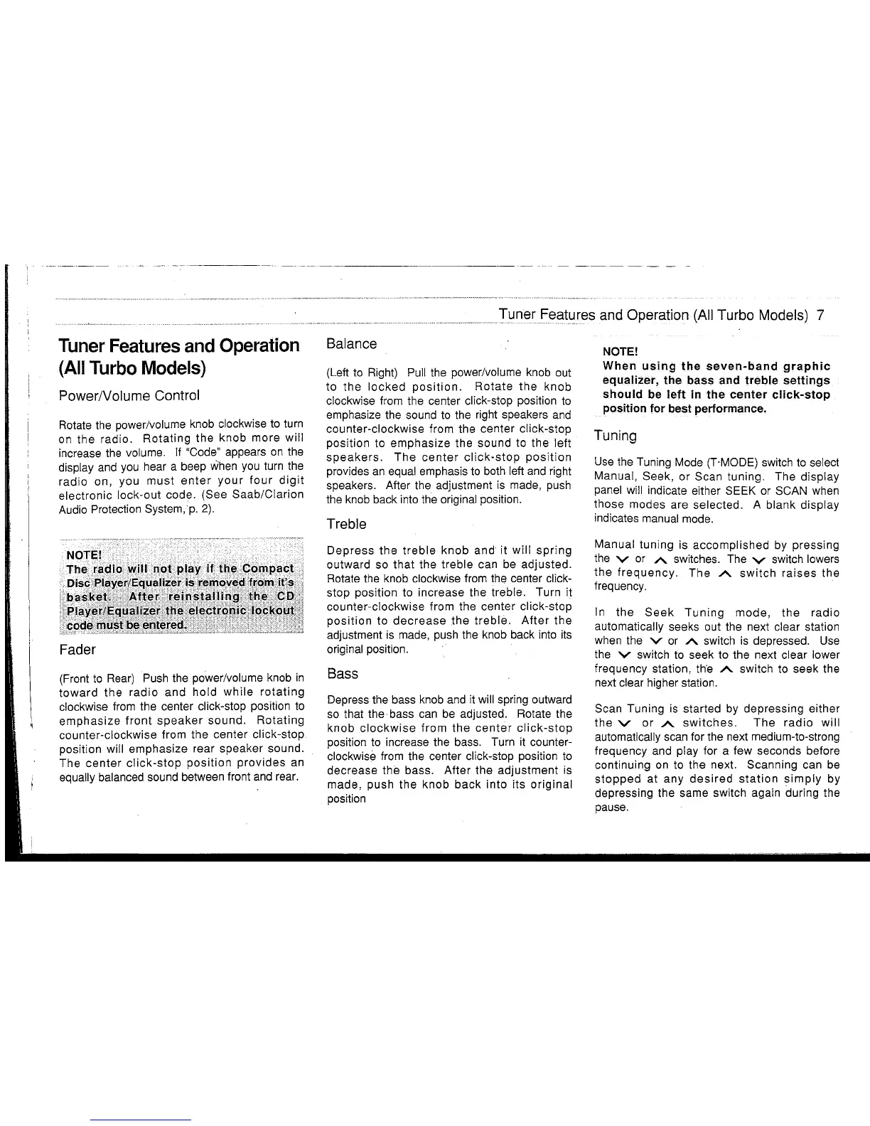 Tuner Features and Operation (All Turbo Models) 7