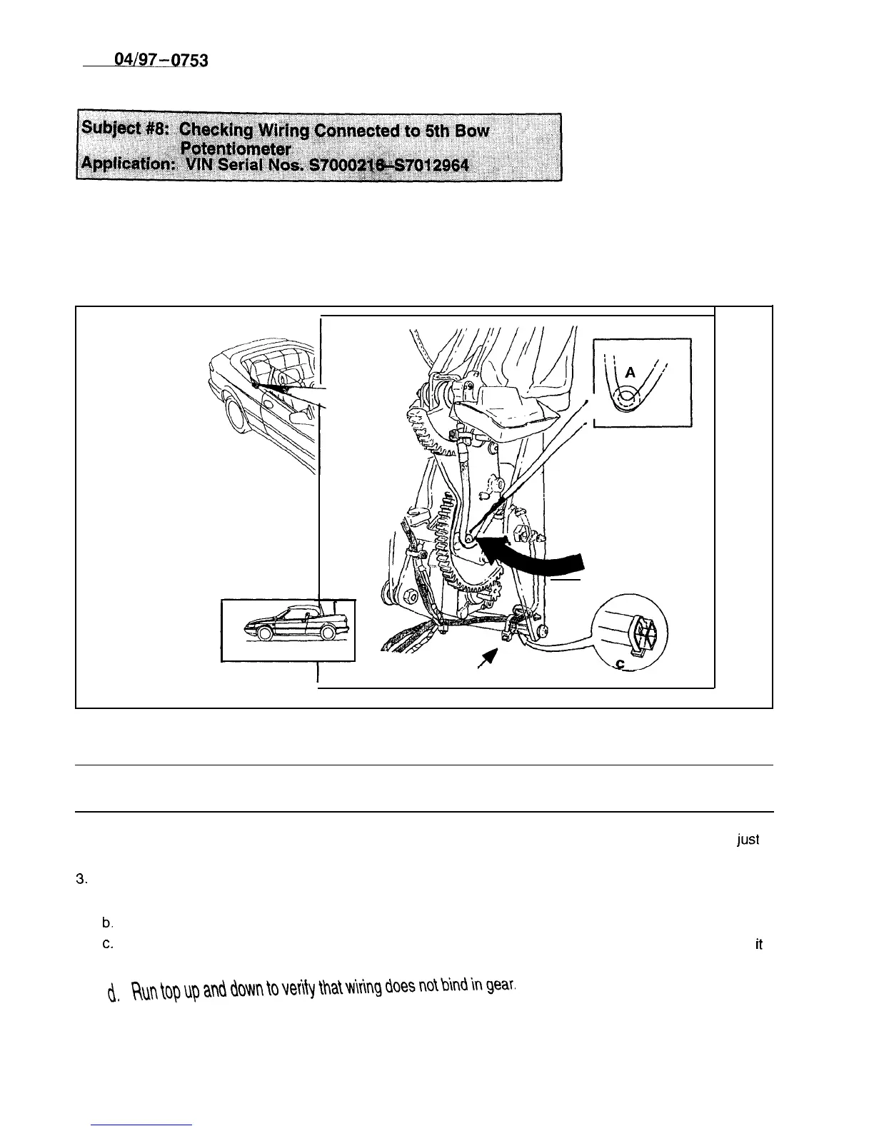 Operate the top using the ‘ROOF” switch until it is in the position shown in Figure 9 above. The top, 5th bow