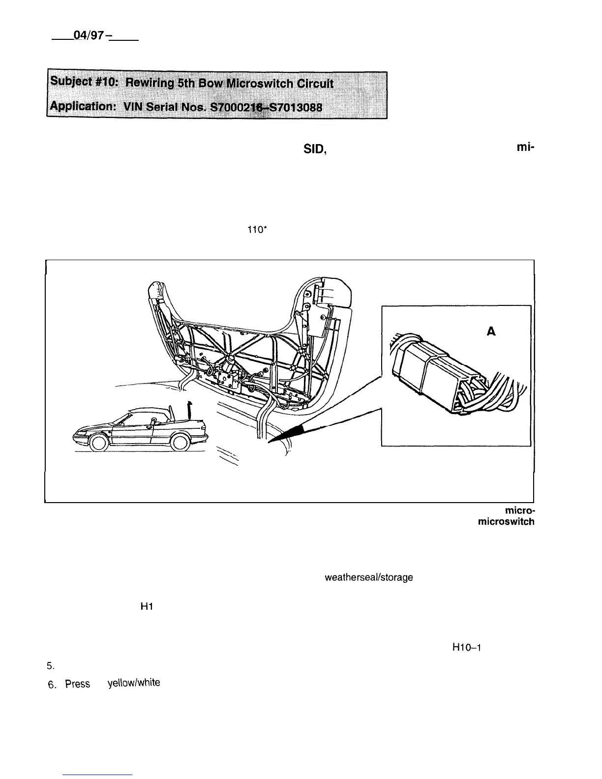 Operate the top using the “ROOF” switch until it is in the position shown above. The top, 5th bow and Ton-