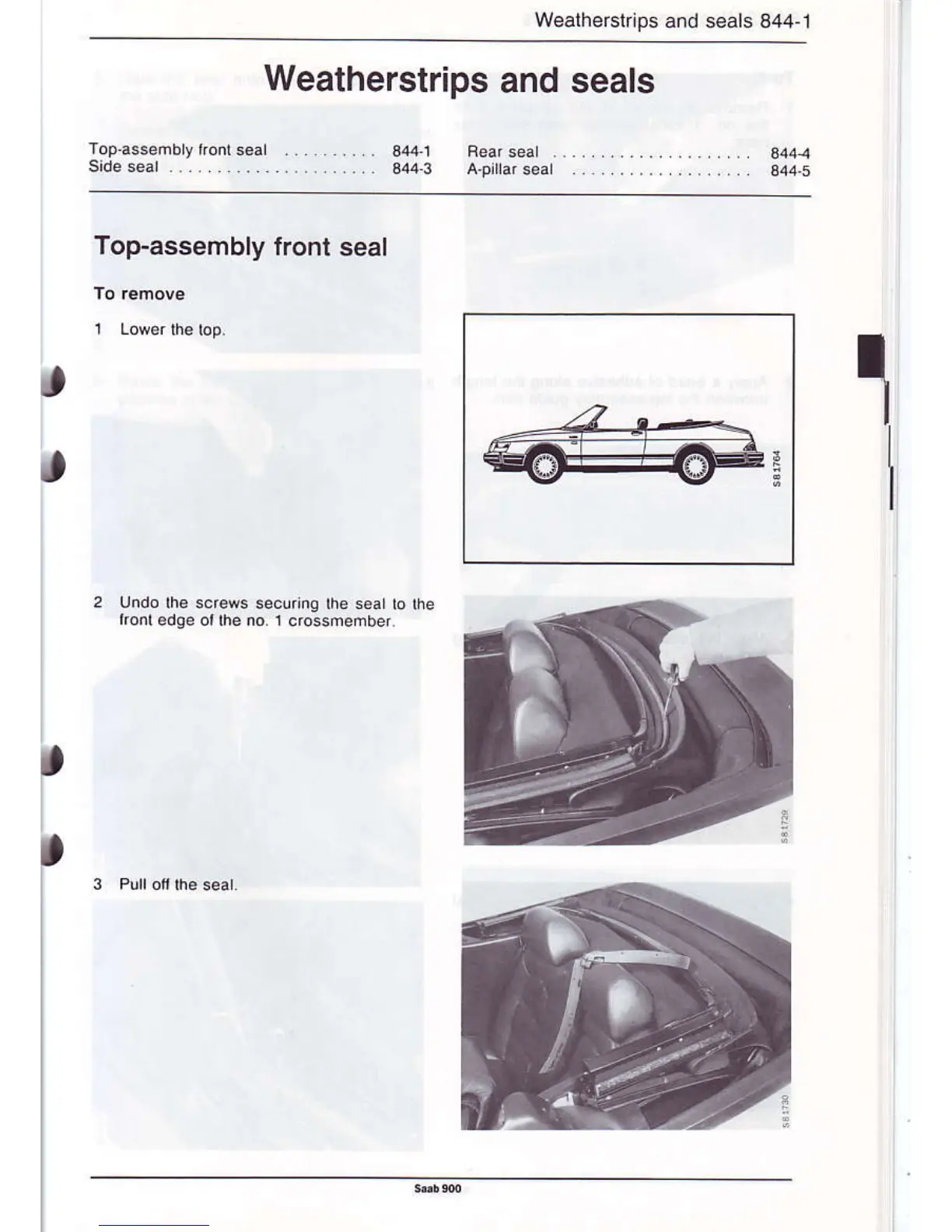 Saab 900 - Weatherstrips and Seals; Top Assembly Front Seal Installation