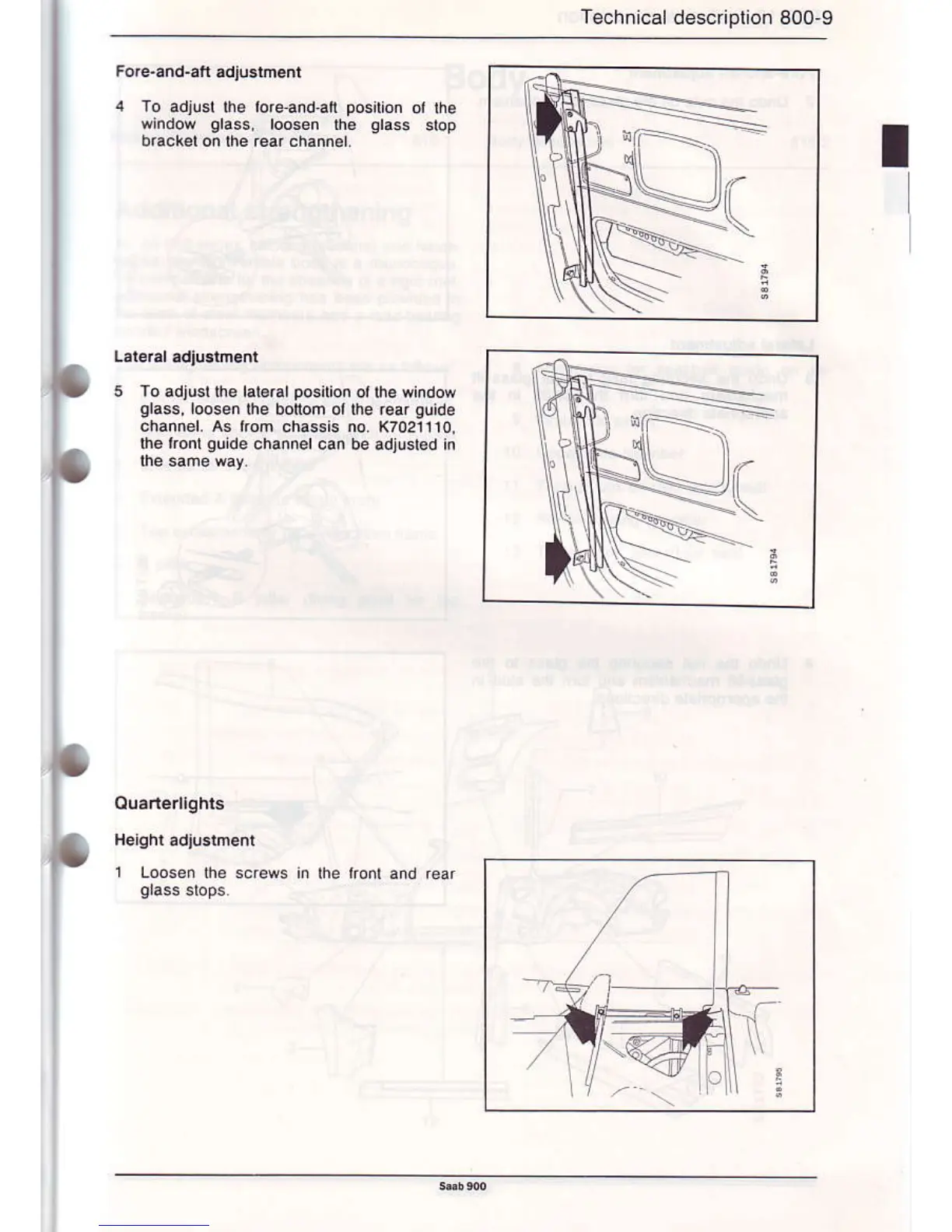 Saab 900 - Fore-And-Aft Adjustment; Lateral Adjustment; Quarterlights
