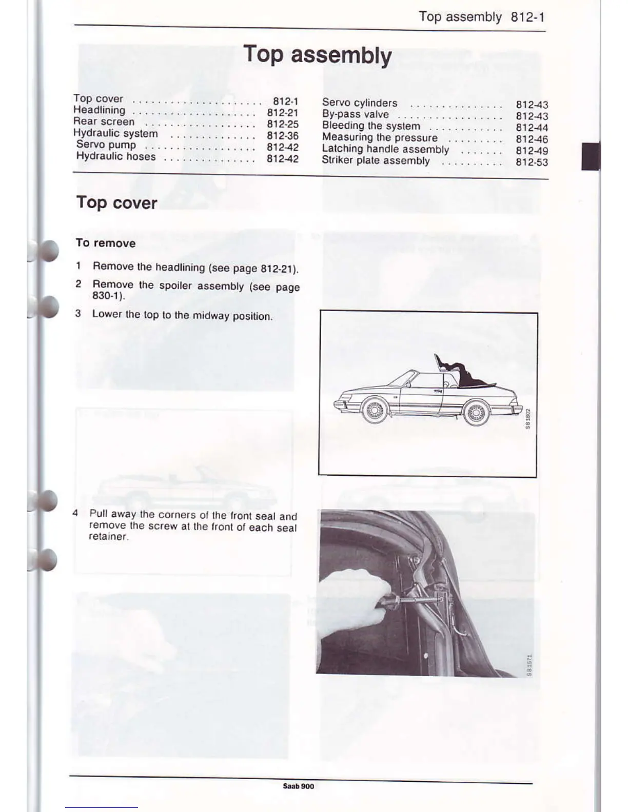 Saab 900 - Top Assembly; Top Cover Procedures