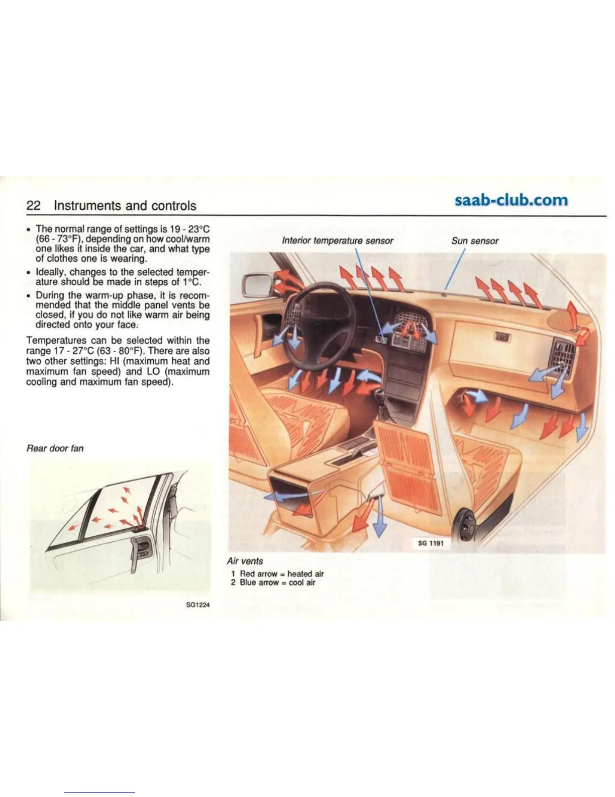 Saab 9000 1995 - ACC System Sensors and Modes; ACC System Sensors; Cold and Warm Weather ACC Operation; Setting Desired Cabin Temperature