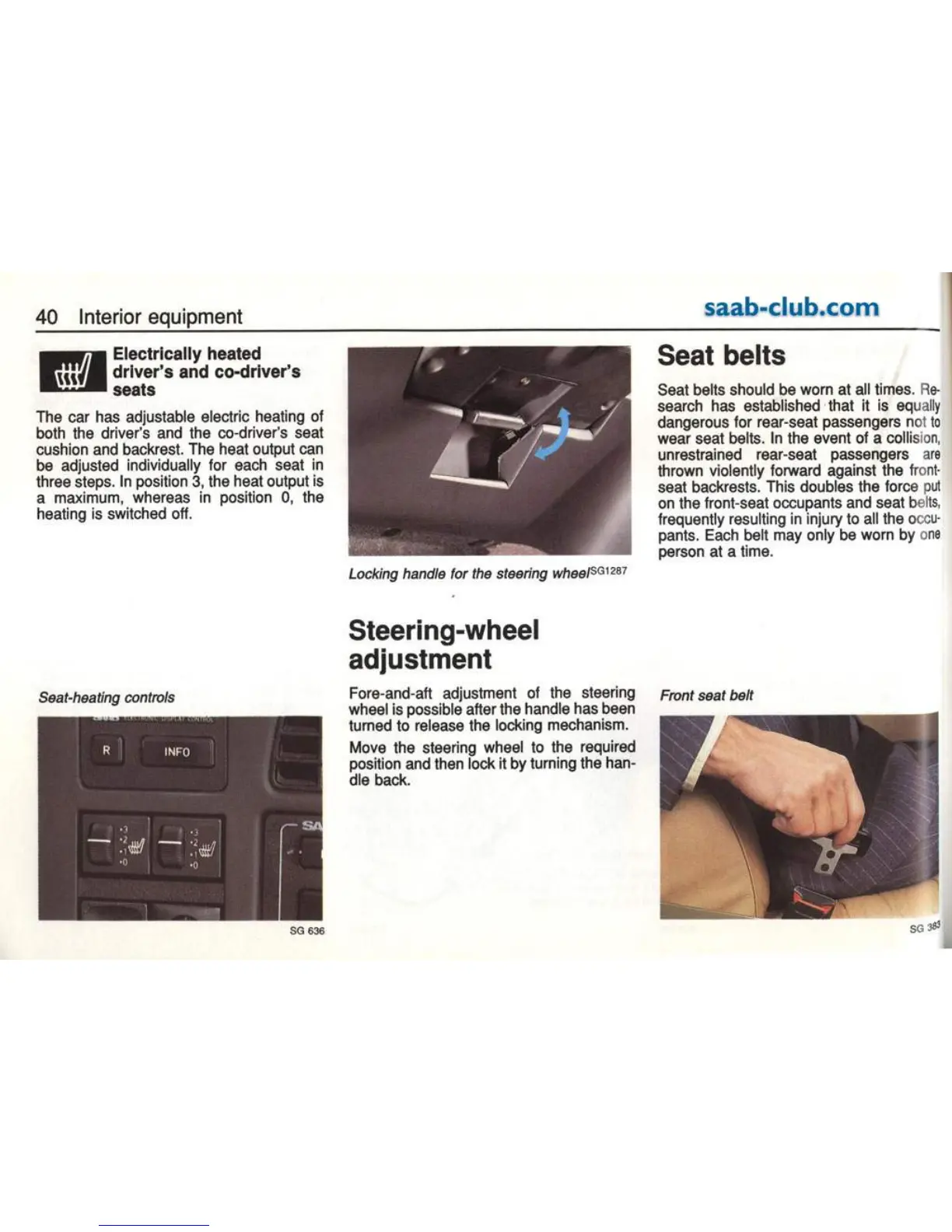Saab 9000 1995 - Seat Heating and Seat Belts; Heated Seats and Steering Wheel Adjustment; Proper Seat Belt Usage and Fitment