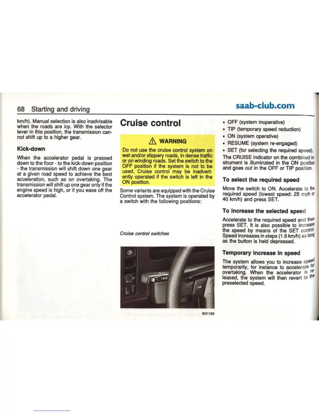 Saab 9000 1995 - Cruise Control System Operation; Cruise Control System Usage; Temporary Speed Increase with Cruise Control