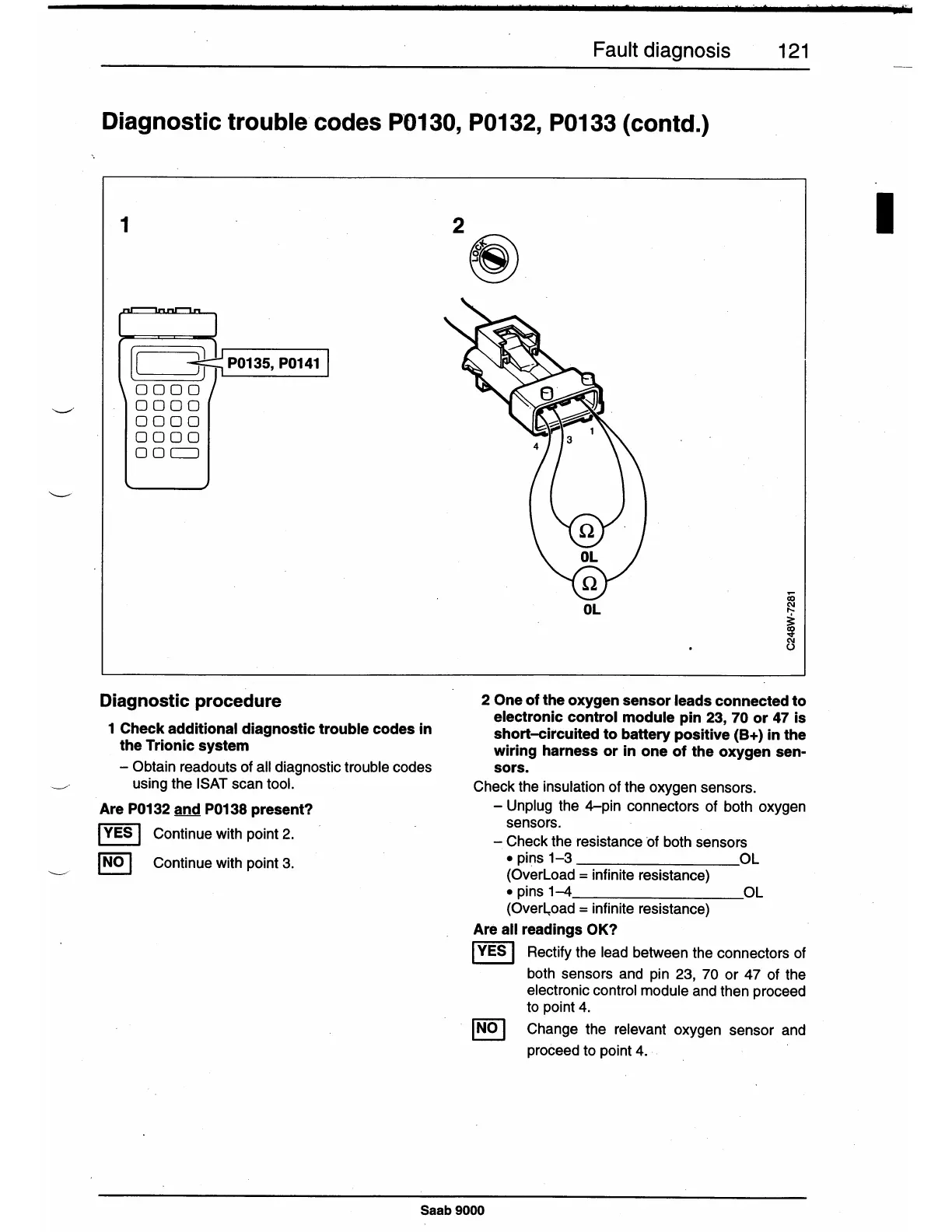 Diagnostic trouble codes P0130, P0132, P0133 (contd.)