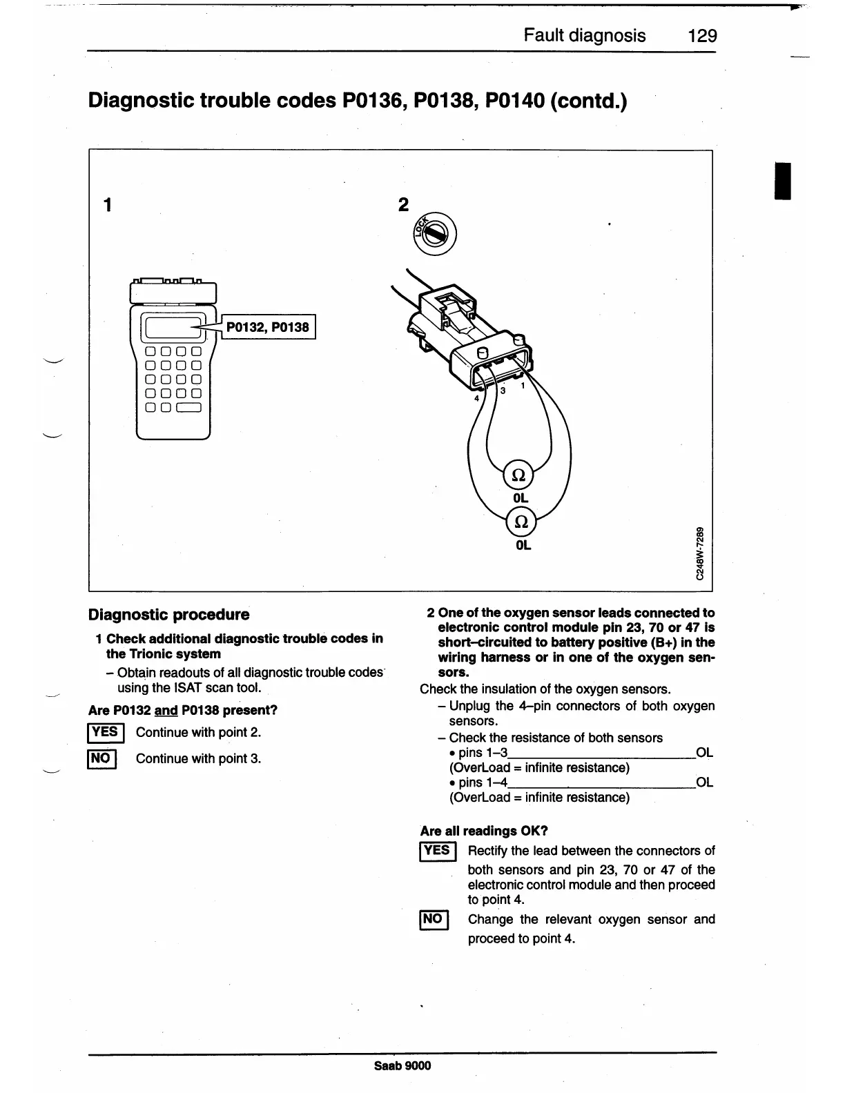 Diagnostic trouble codes P0136, P0138, P0140 (contd.)
