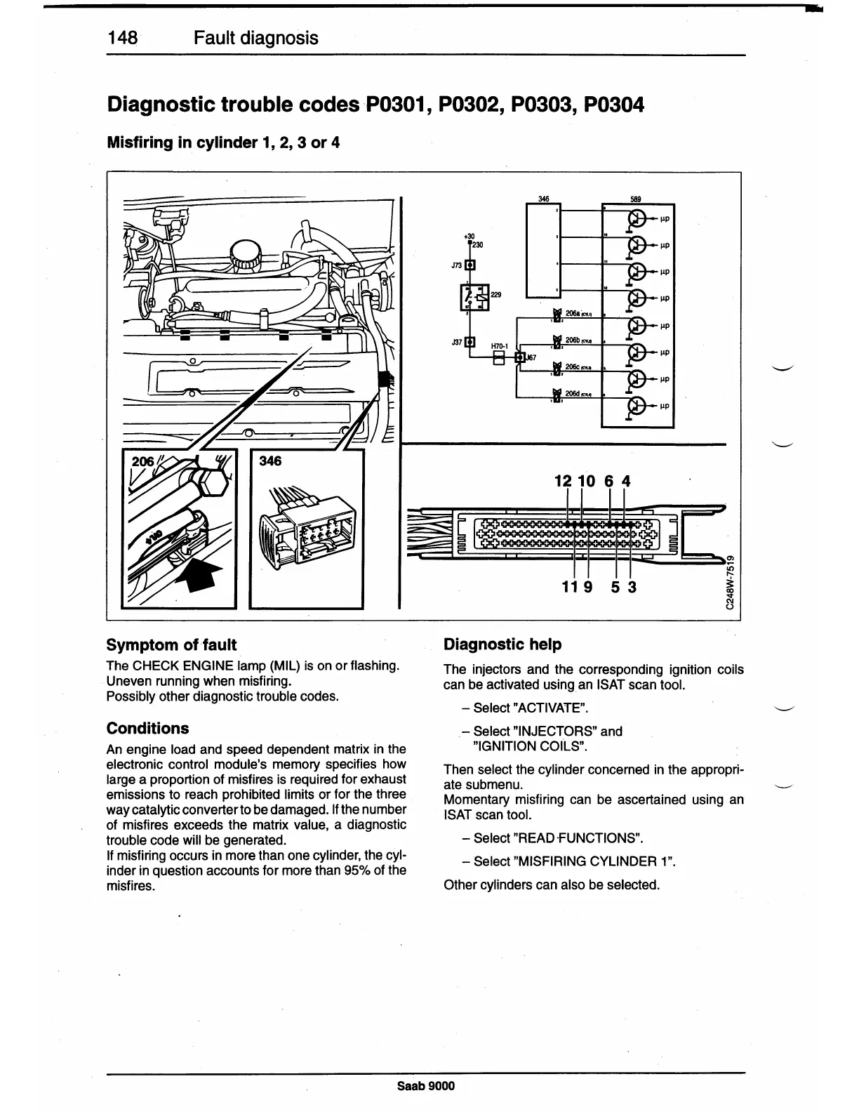 Diagnostic trouble codes ·P0301, P0302, P0303, P0304