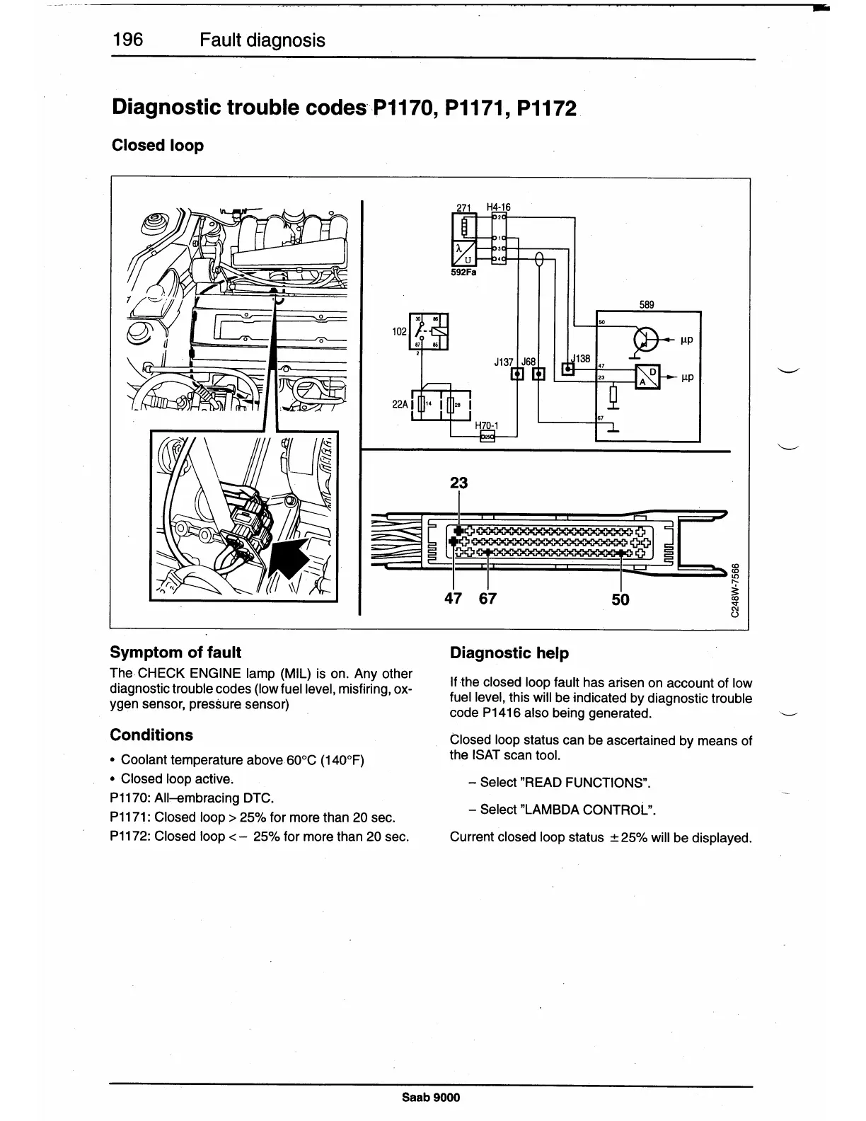 diagnostic trouble codes (low fuel level, misfiring, ox-