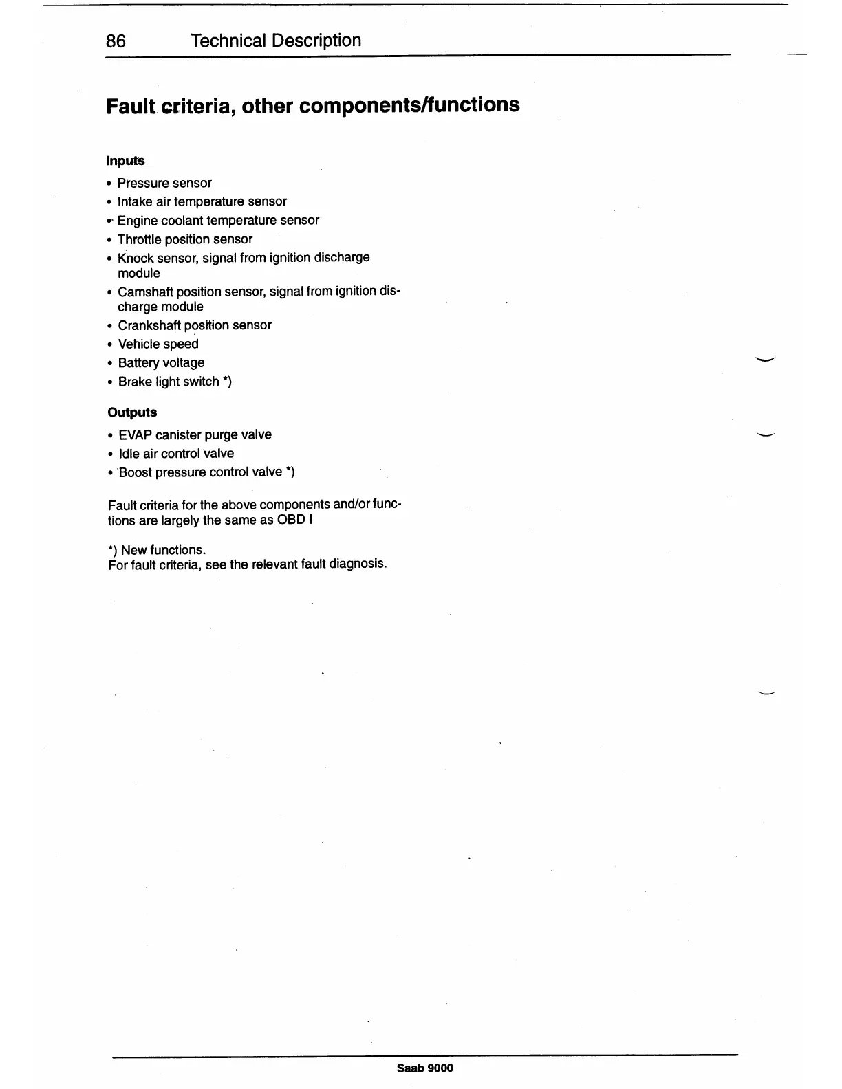 For fault criteria, see the relevant fault diagnosis.