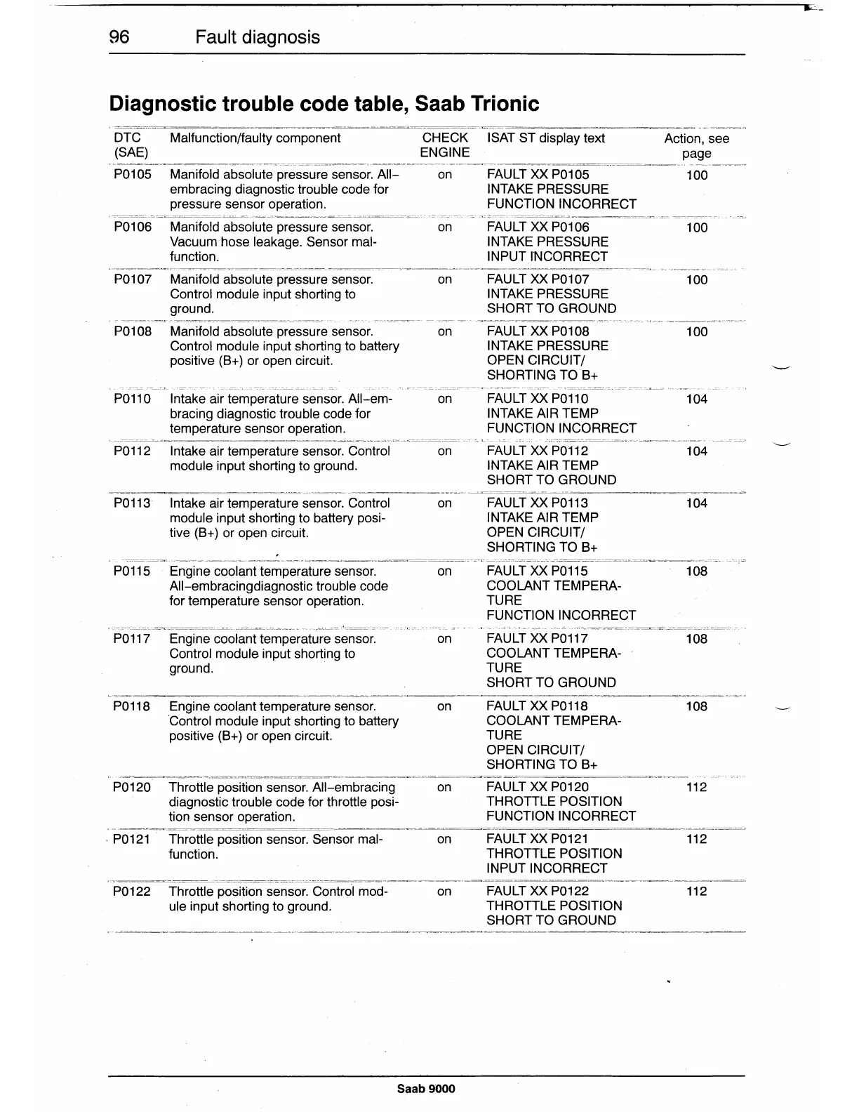Diagnostic trouble code table, Saab Trionic