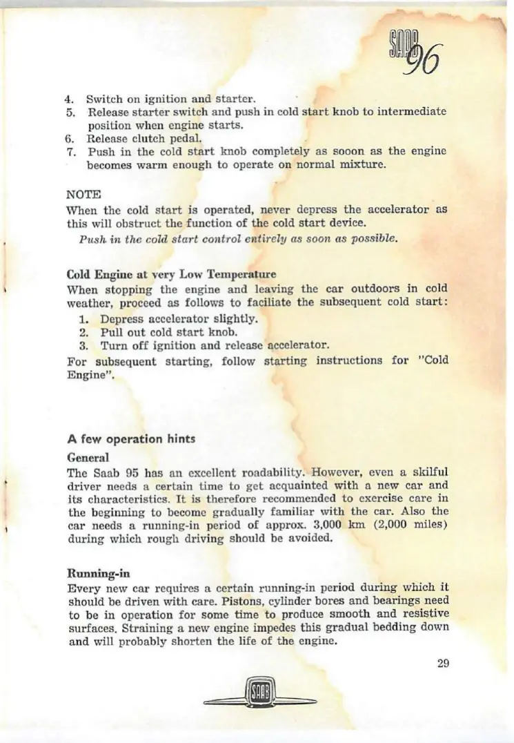 Saab 96 - Engine Starting and Running-in Procedures