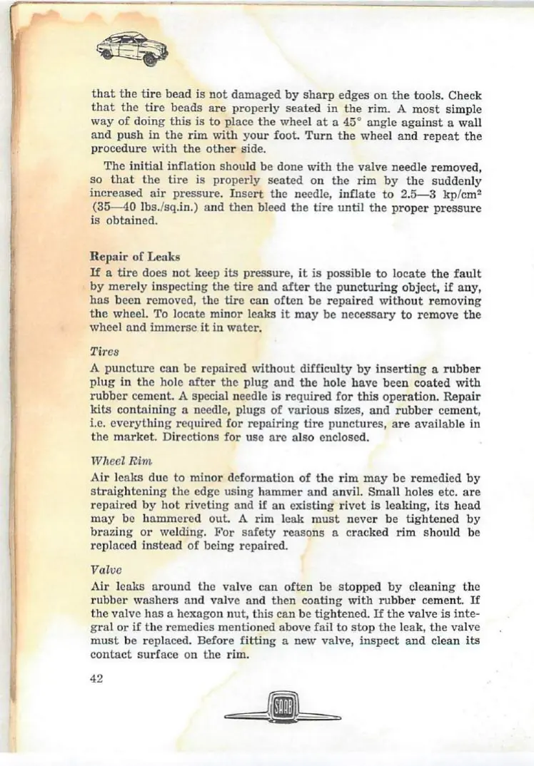 Saab 96 - Repair of Leaks; Tires; Wheel Rim; Valve