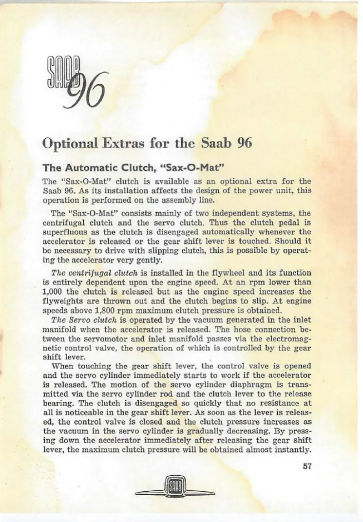 Saab 96 - Additional Features and Important Notes; Optional Extras and Heater System