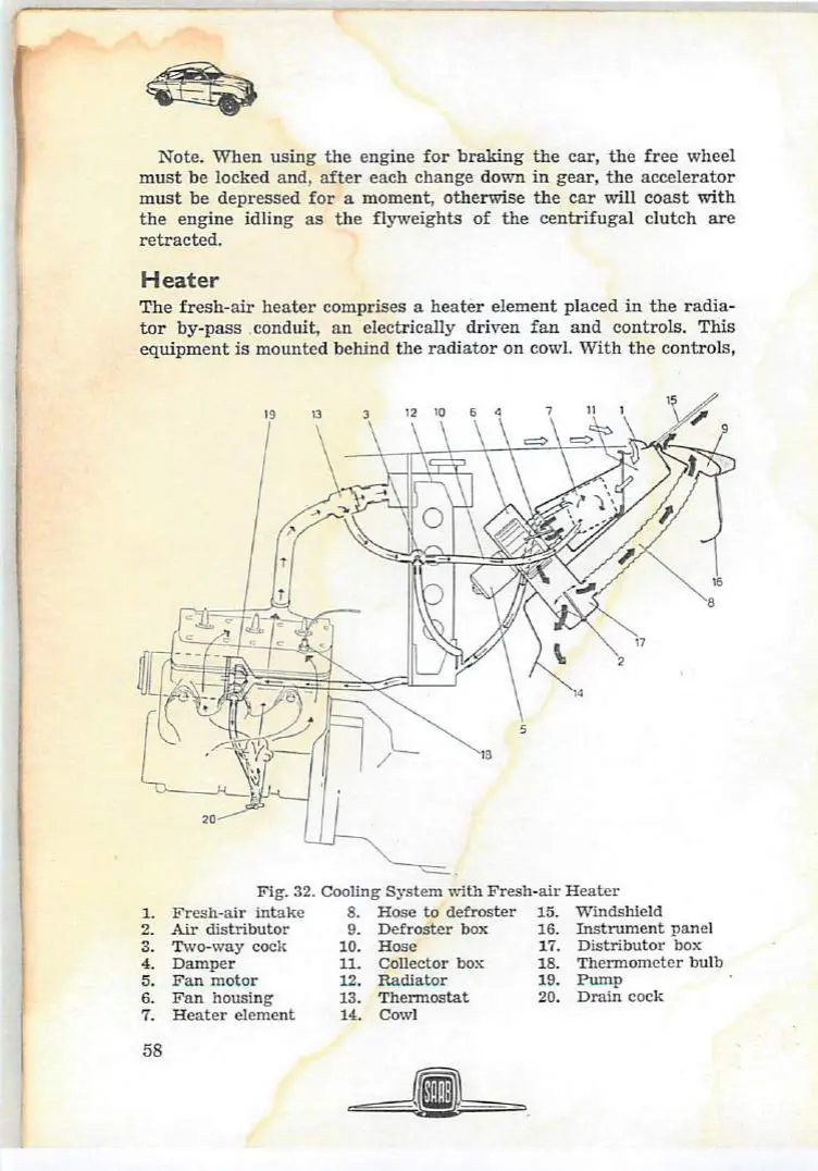 Saab 96 - Heater; Cooling System with Fresh-Air Heater