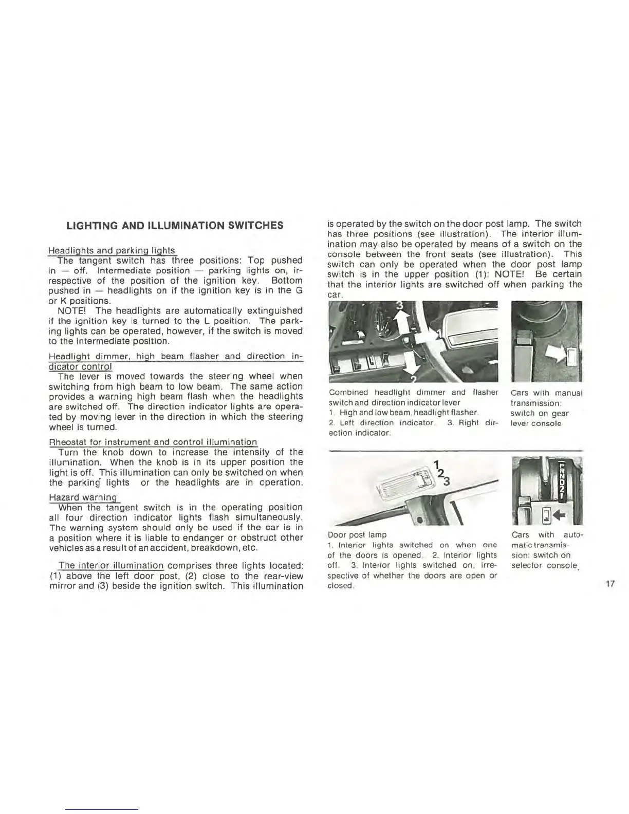 beam, headlight flasher. sWitch on gear