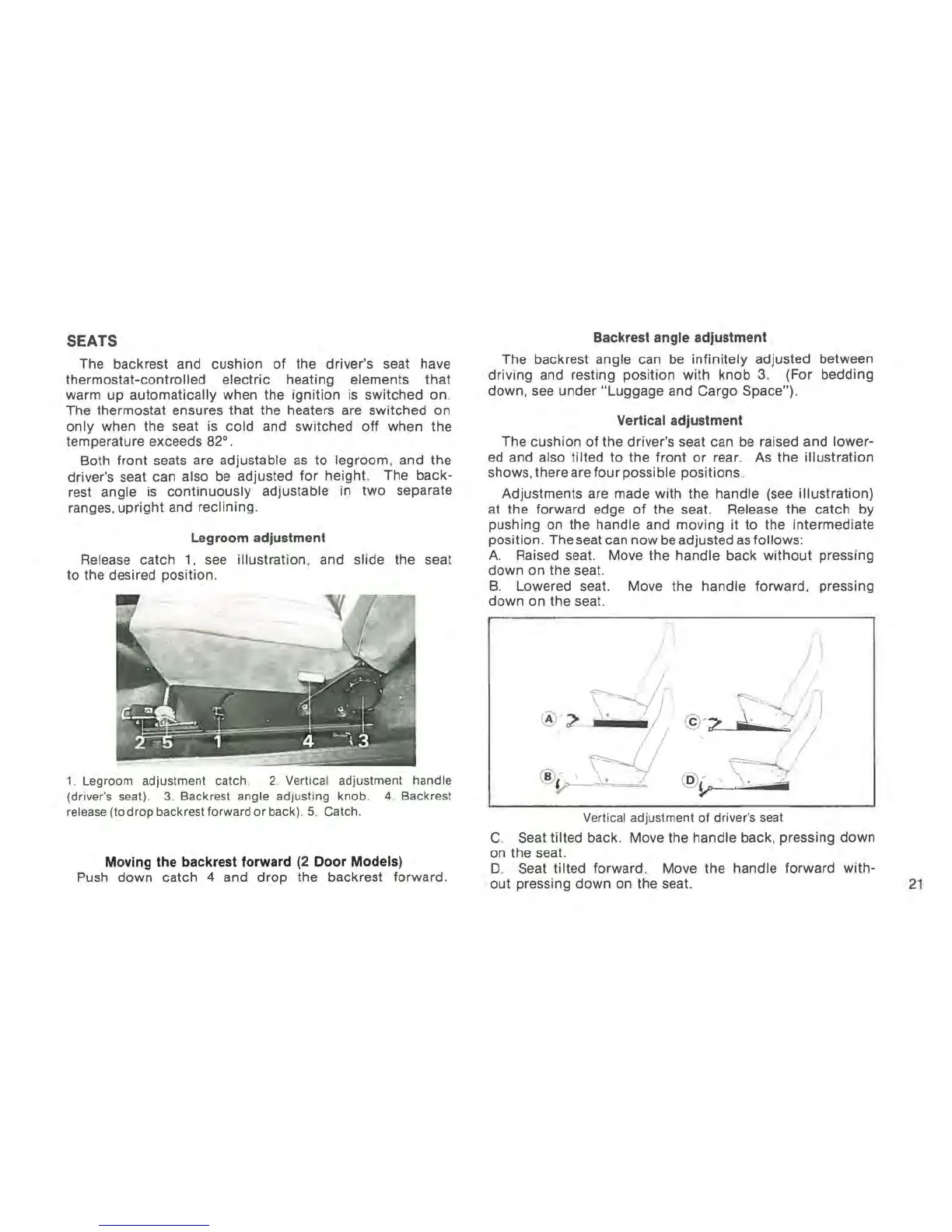 (dnver's seat). 3. Backrest angle adjusting knob. 4. Backrest