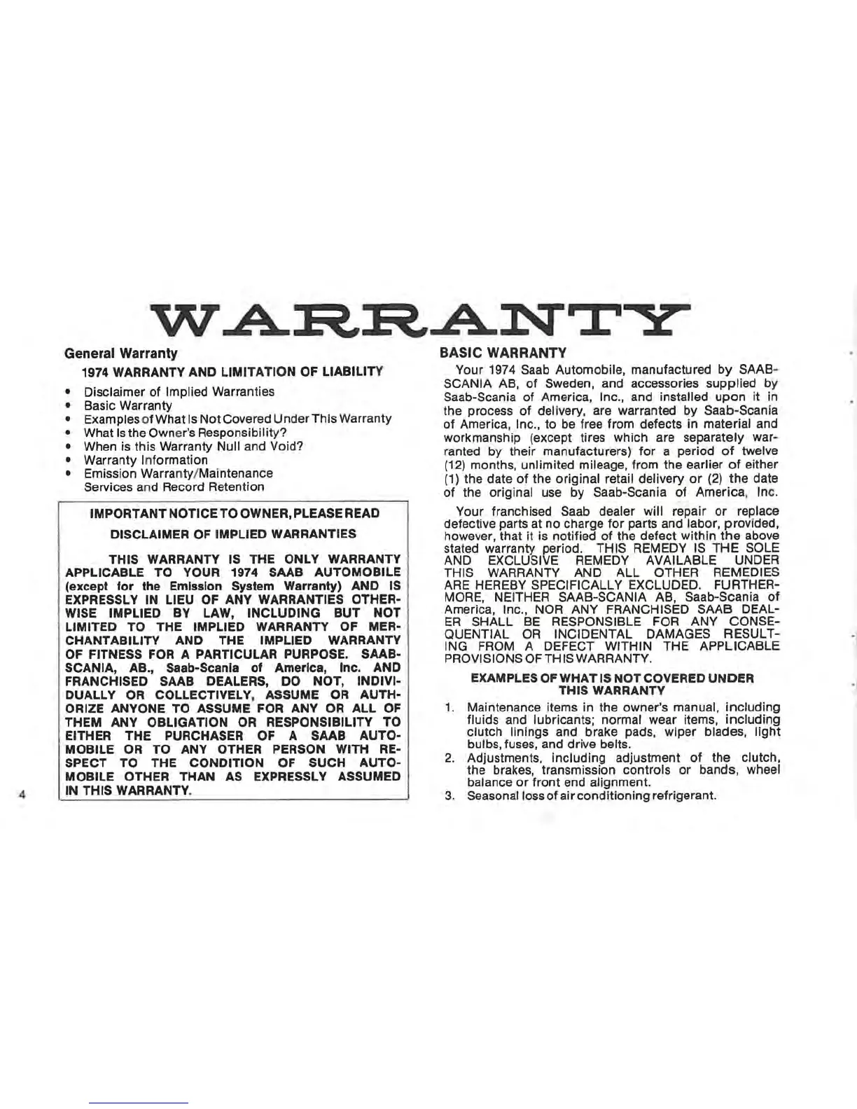 APPLICABLE TO YOUR 1974 SAAB AUTOMOBILE