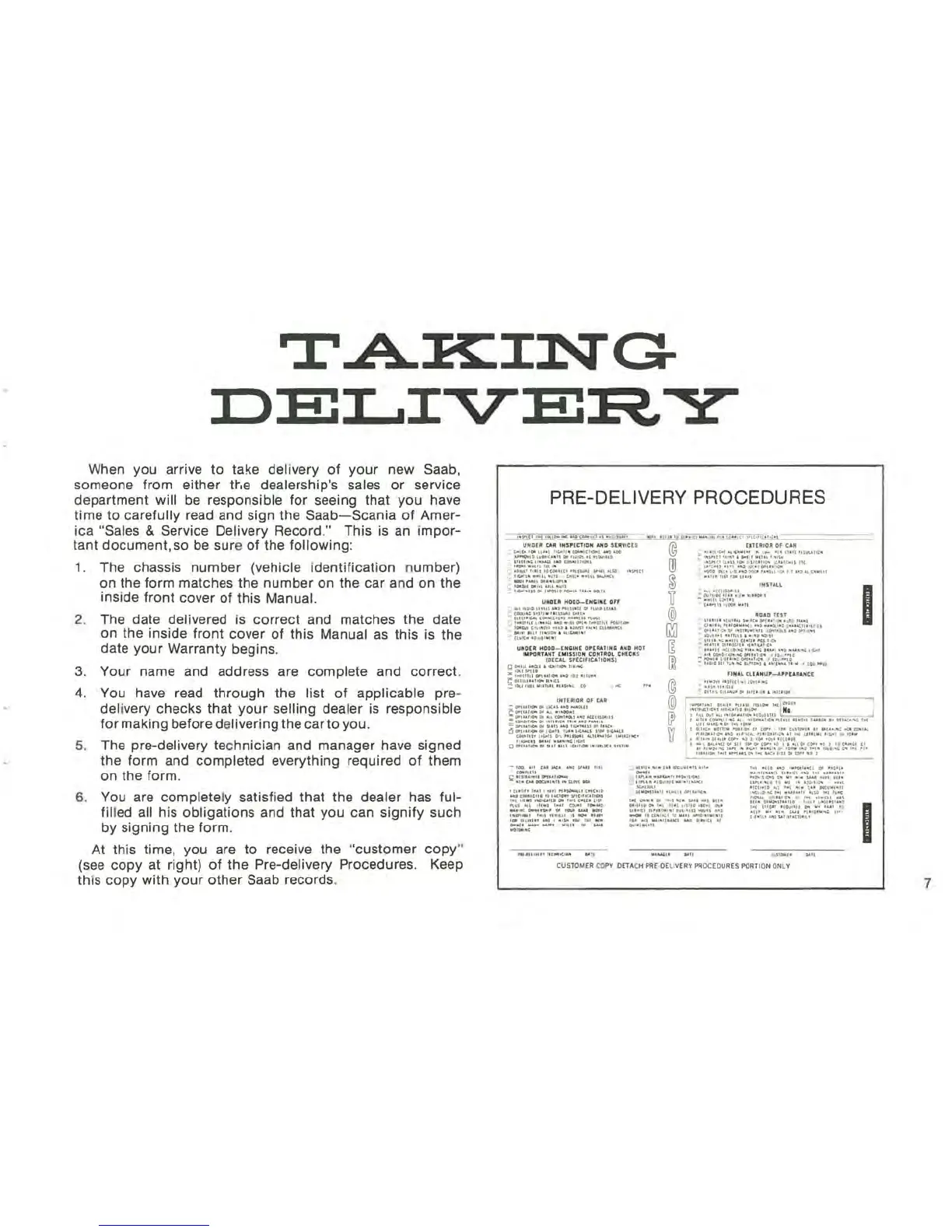 PRE-DELIVERY PROCEDURES