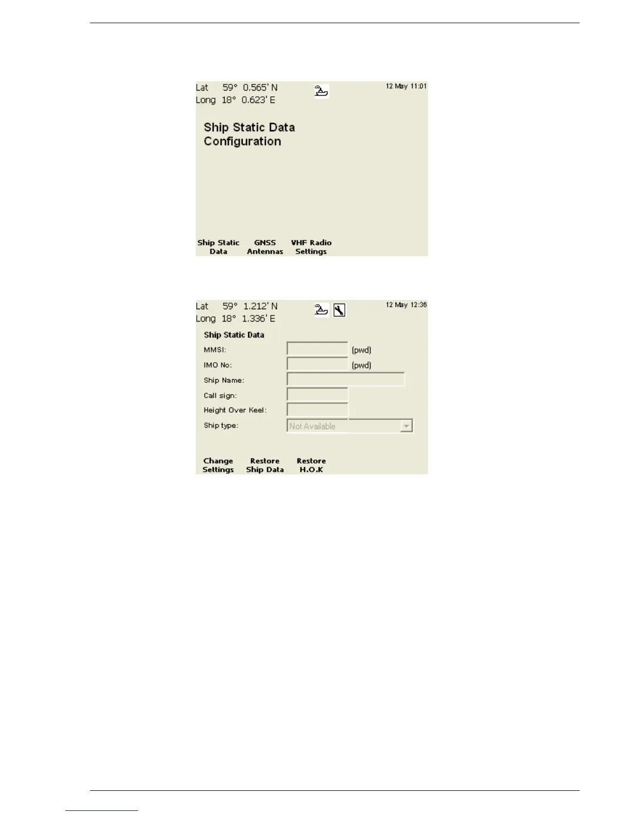 Press the function key “Ship Static”. The following view should be displayed: