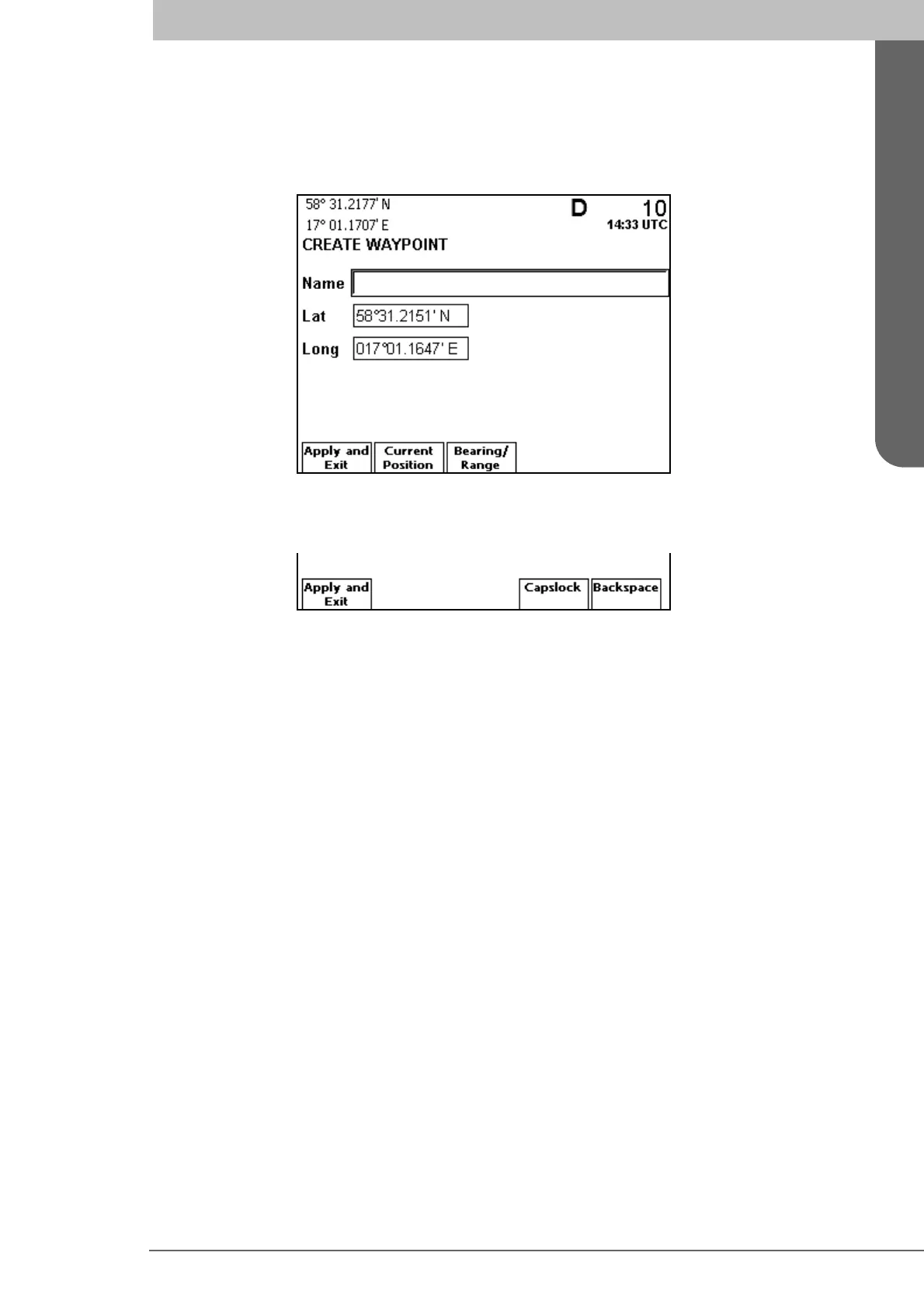 To name the waypoint, select the Name field using ∧ and press ENTER. The field be-