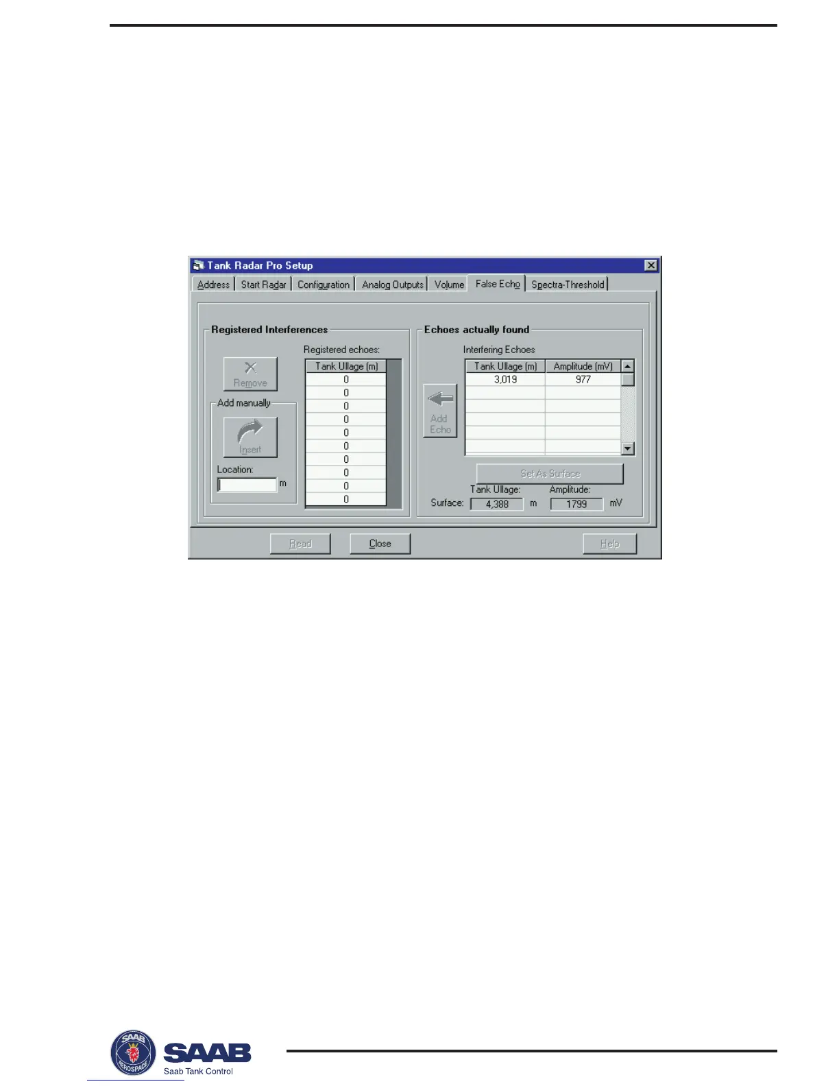 Note! Registration of disturbing echoes requires that Saab´s echofixer is