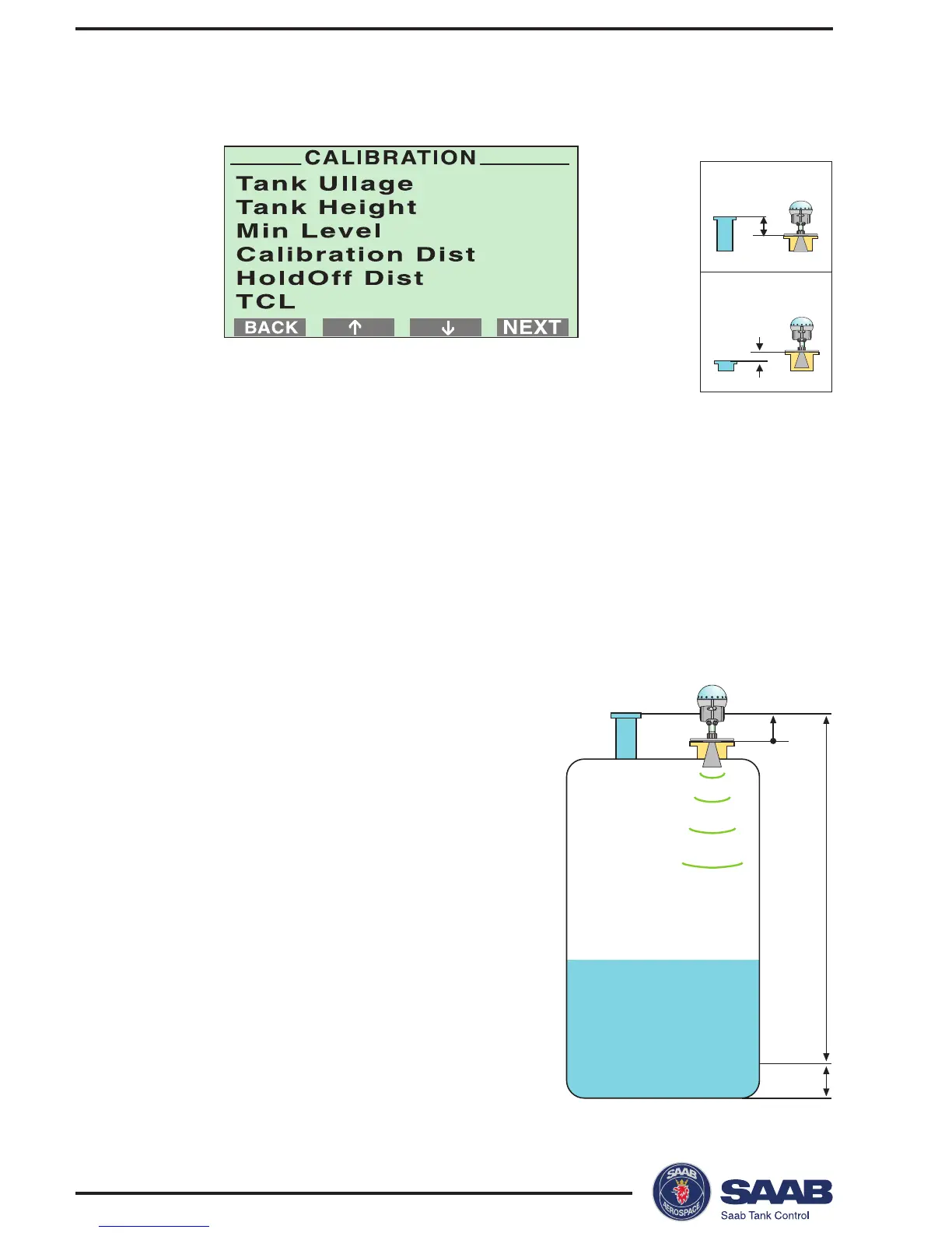 The tank calibration distances are defined as illustrated on