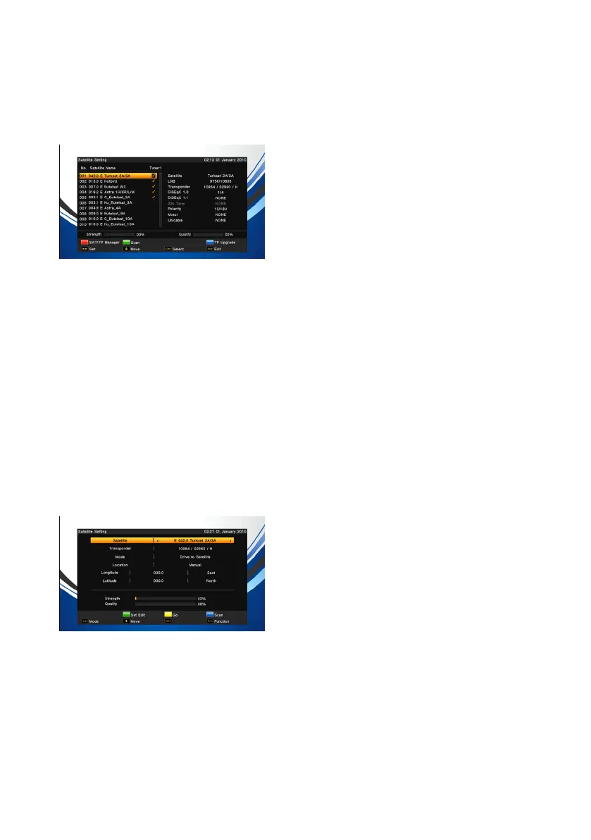 1. Satellite: In this item, press [Left/Right] key can switch Satellites and press [OK] key can enter satellite