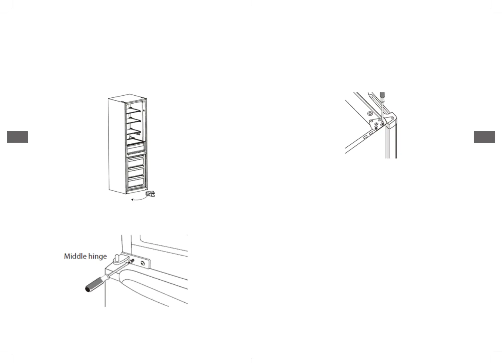 5� Reverse the middle hinge� Screw the middle hinge onto the