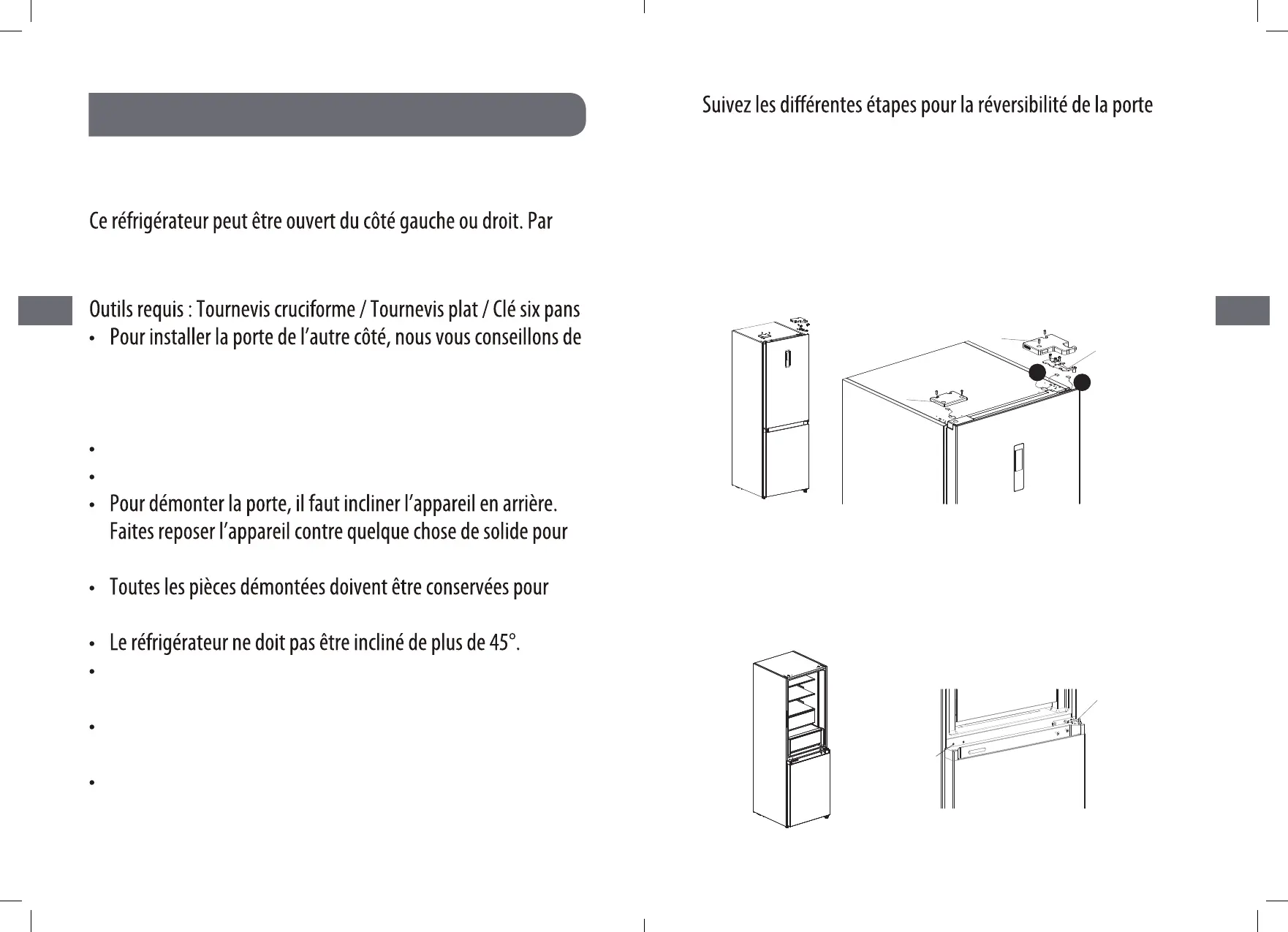 défaut, la porte s’ouvre du côté droit. Si vous voulez ouvrir la