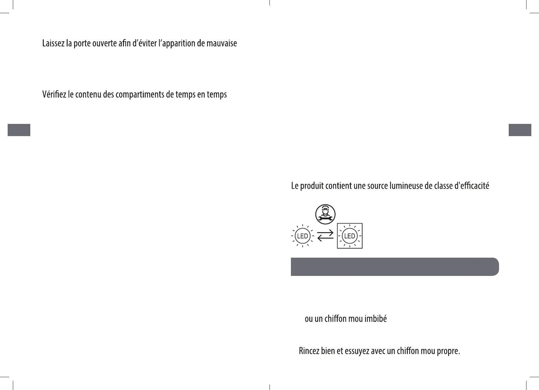 Attention: l'éclairage LED ne doit pas être remplacé par