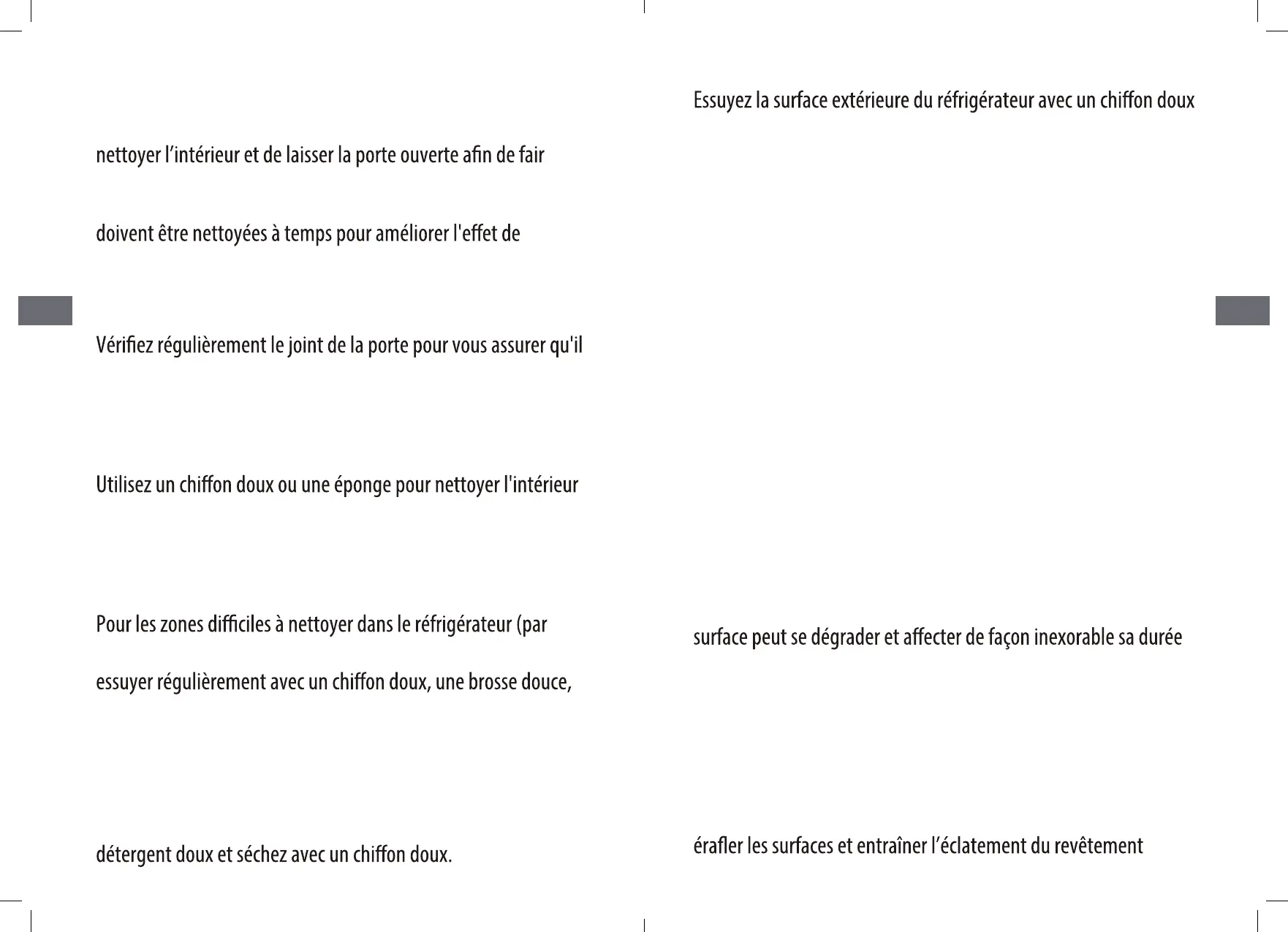 L'intérieur du réfrigérateur doit être nettoyé régulièrement pour