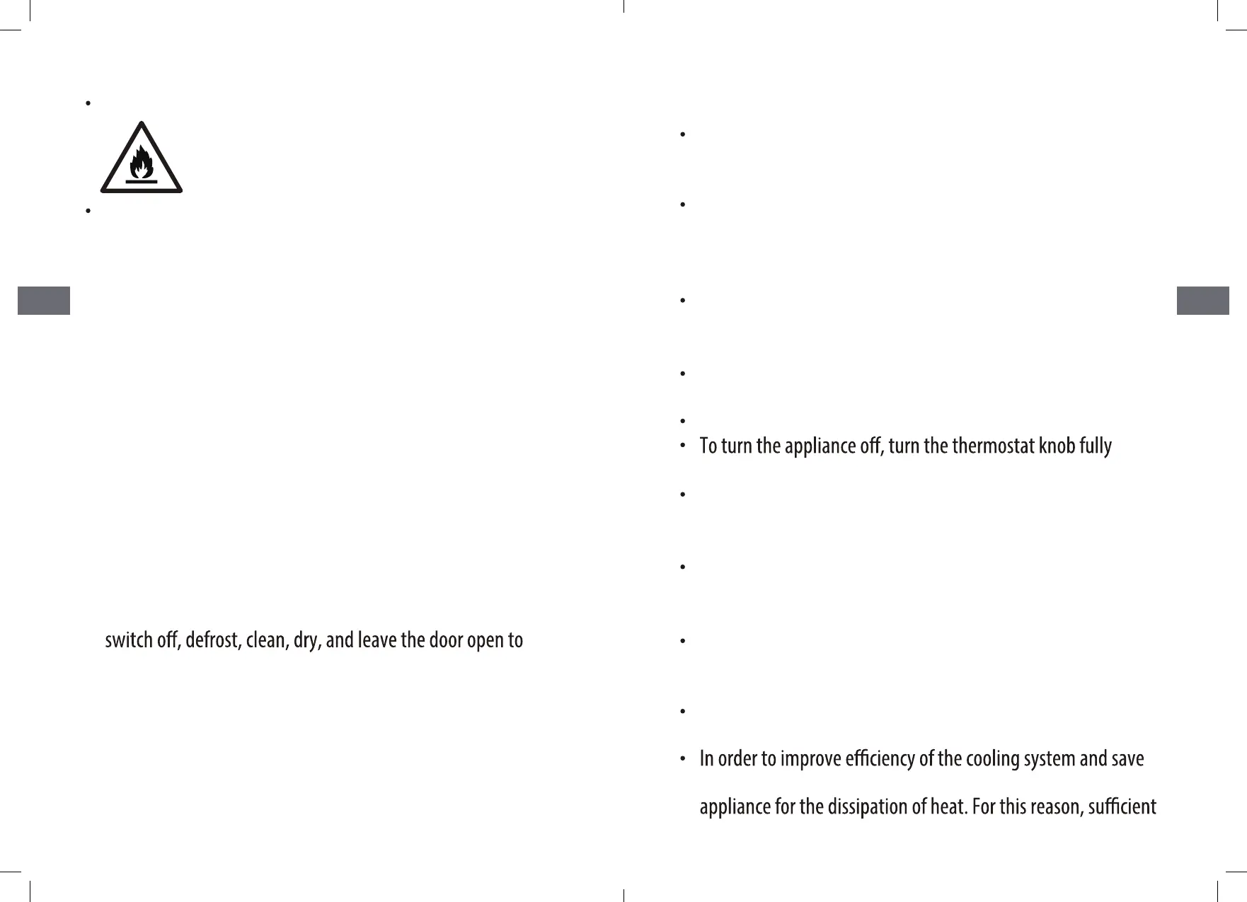 Warning: Risk of re / ammable materials. Ther
