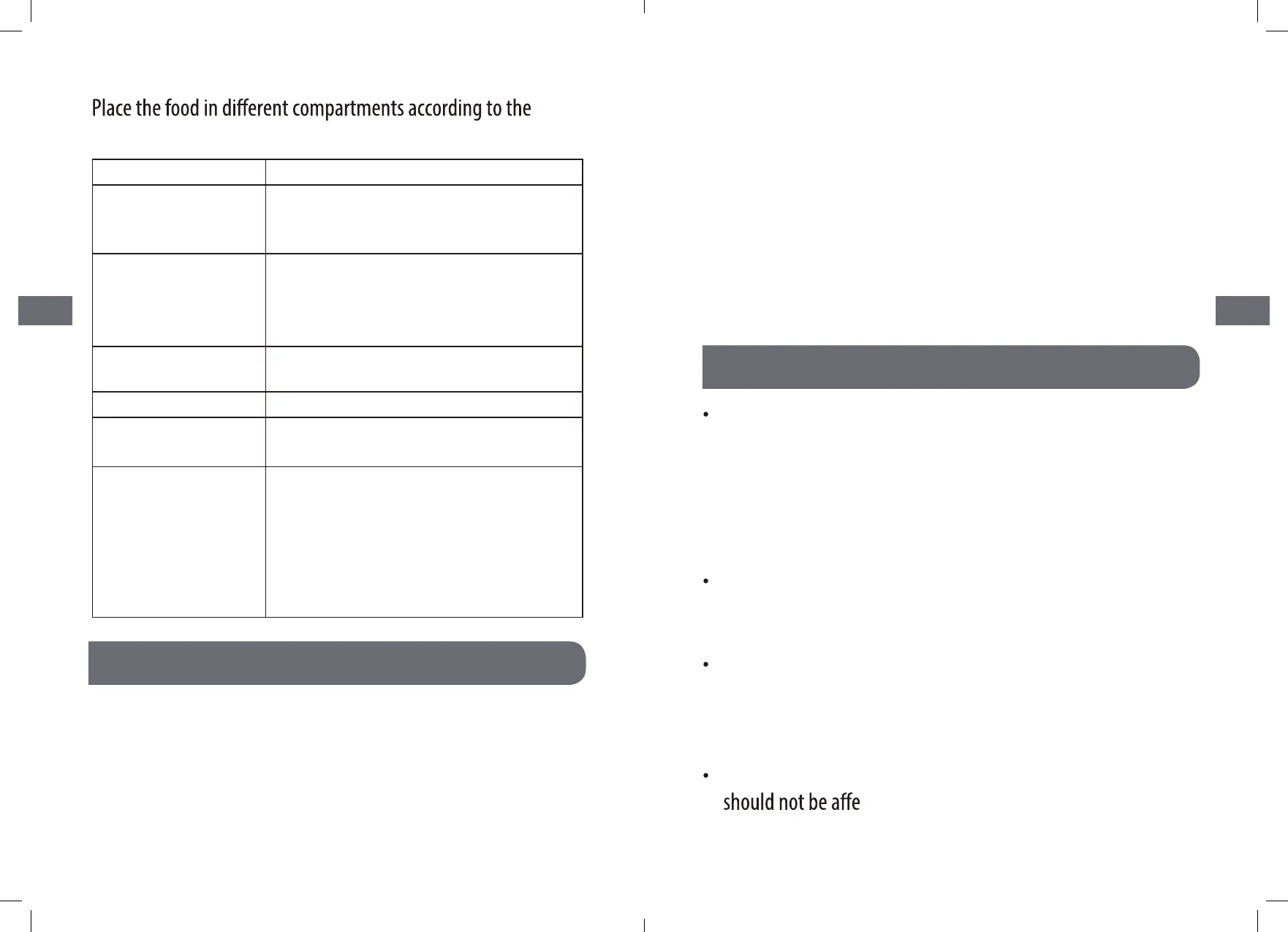 · Fruits, herbs and vegetables should be placed