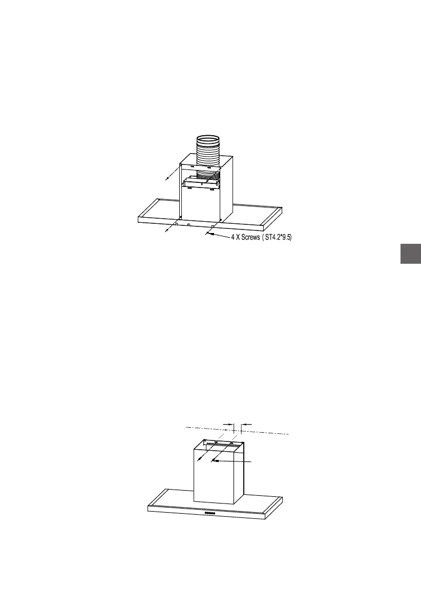 • Assemble lower chimney on hood body with 2 screws 12,