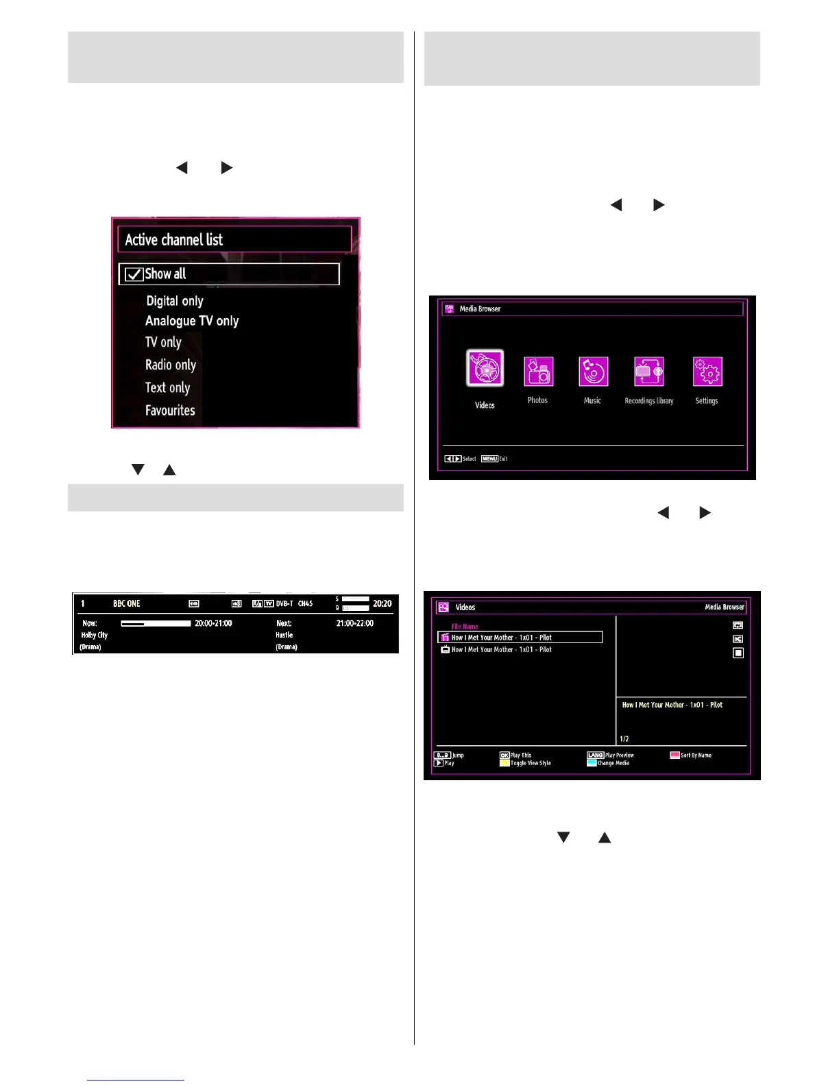 channel selected and the programmes on it. The name