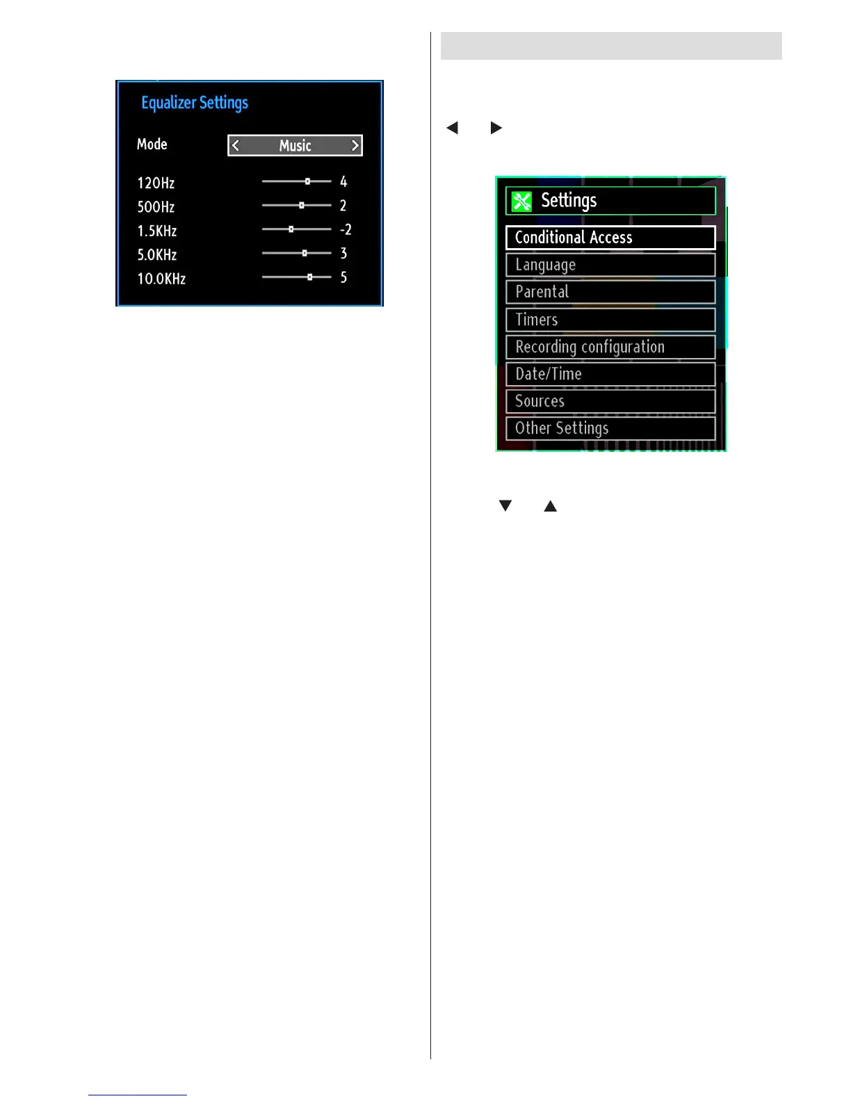 Equalizer: Press OK button to view equalizer sub-