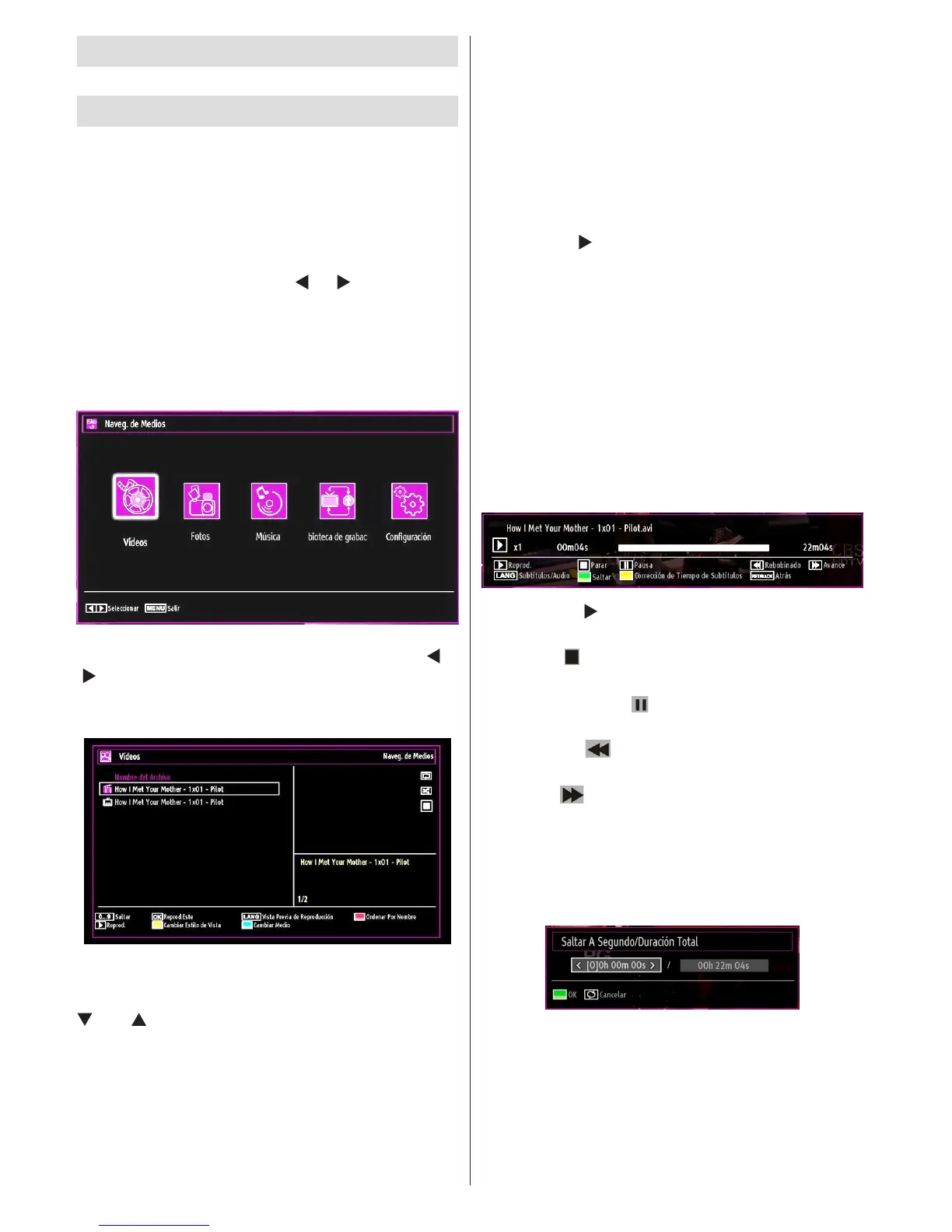 vídeo disponibles en la pantalla. Utilice los botones“