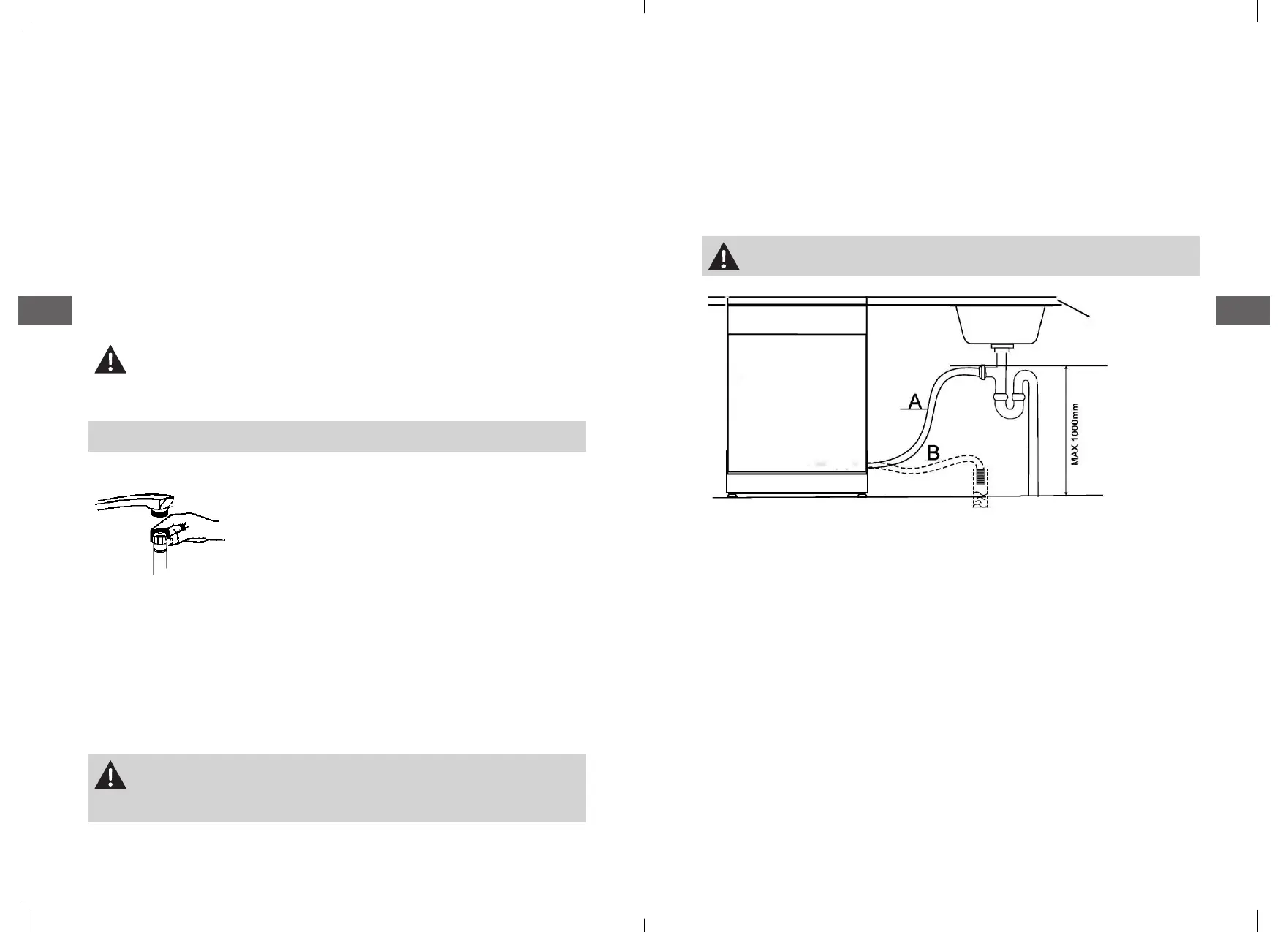 Si l’évier se trouve à plus de 1000 mm du sol, l’eau présente dans