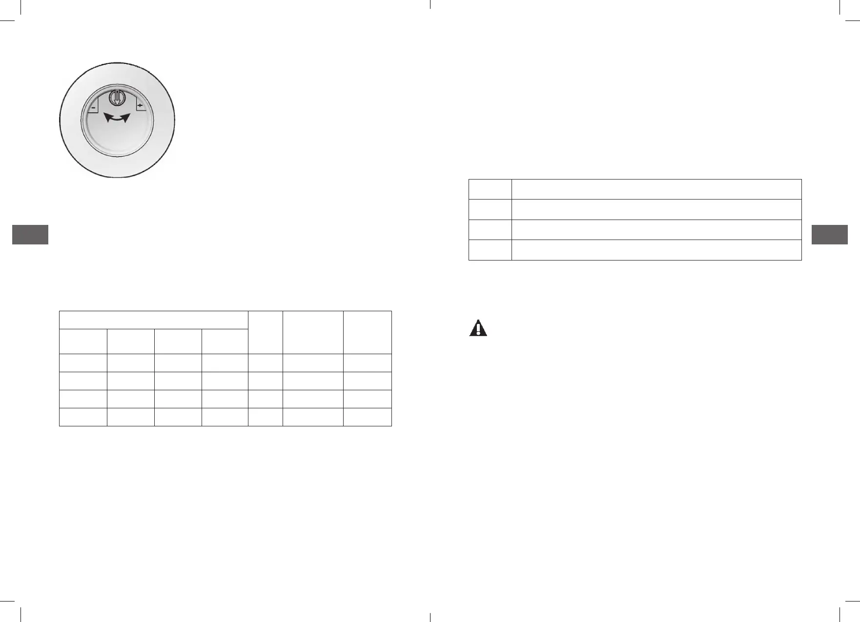 "+" Setting toward the "+" sign
