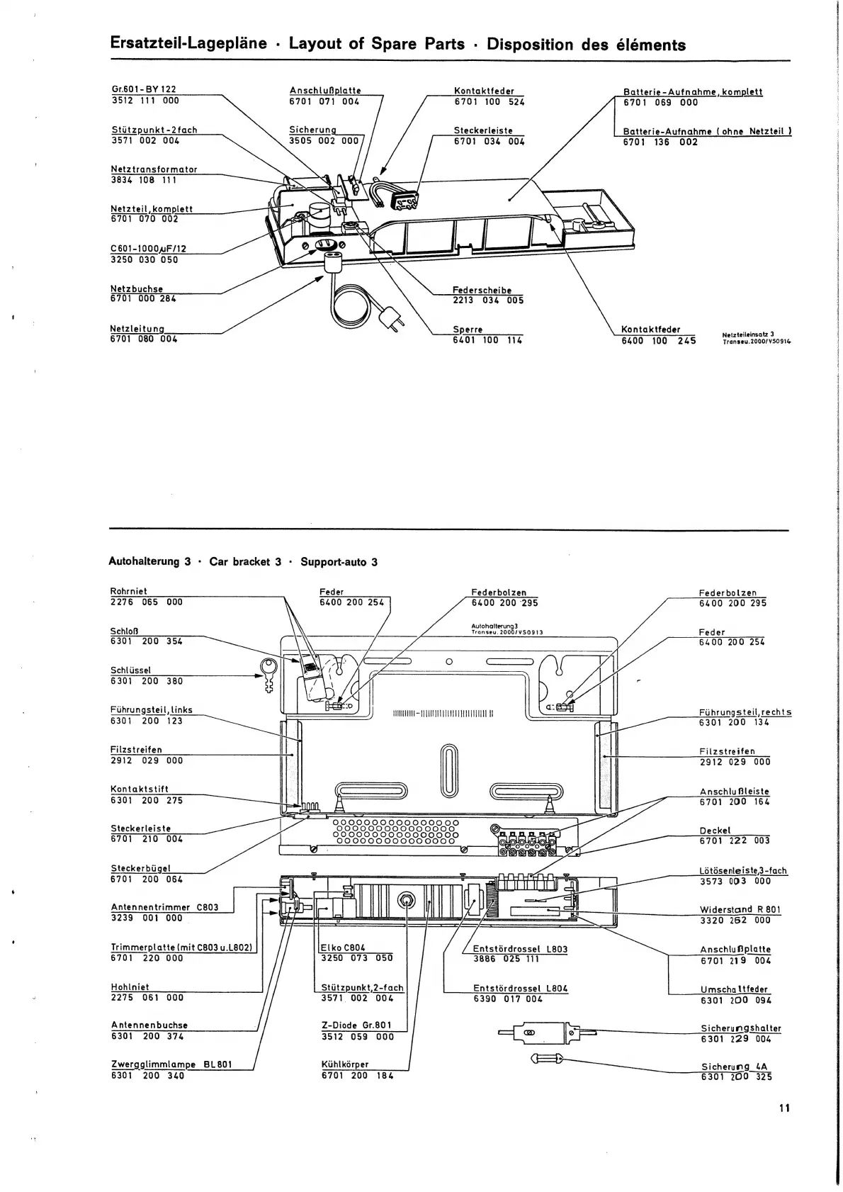 Saba Transall de Luxe automatic - Spare Parts Layout - Car Bracket