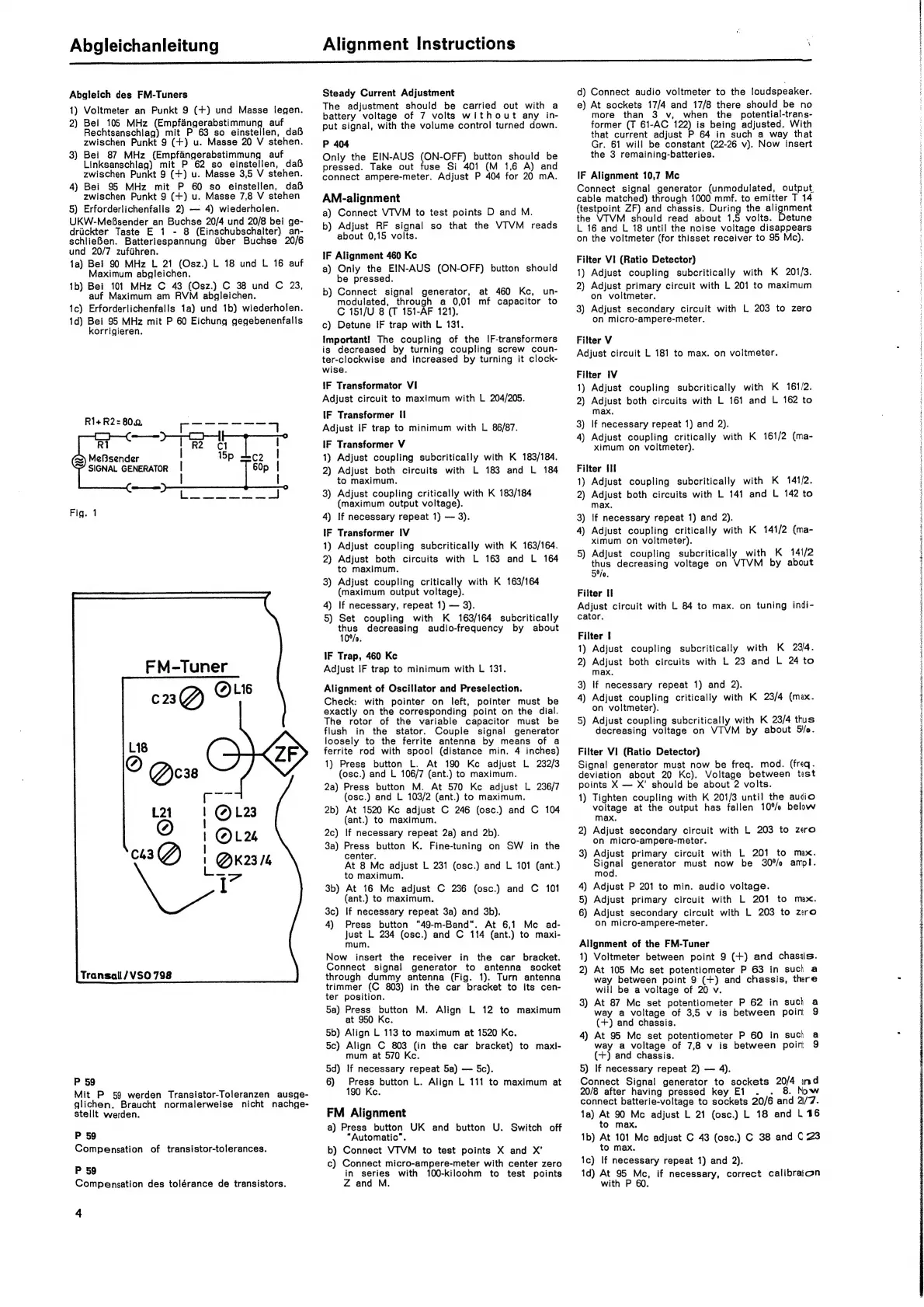 Saba Transall de Luxe automatic - Alignment Instructions - FM Tuner; FM Tuner and IF Alignment