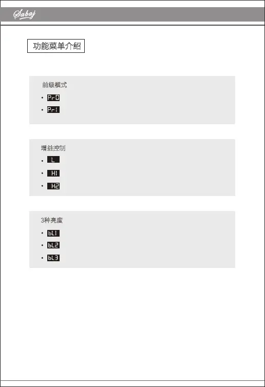 Sabaj A10H - Configuration Settings; Pre-mode Configuration; Gain Control Options; Display Brightness Adjustment