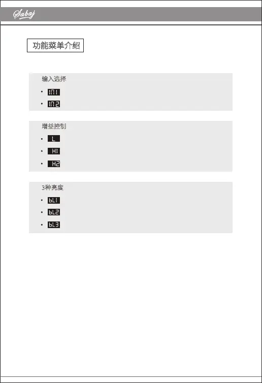 Sabaj A20h - Function Menu Introduction; Input Selection; Gain Control; Brightness Settings