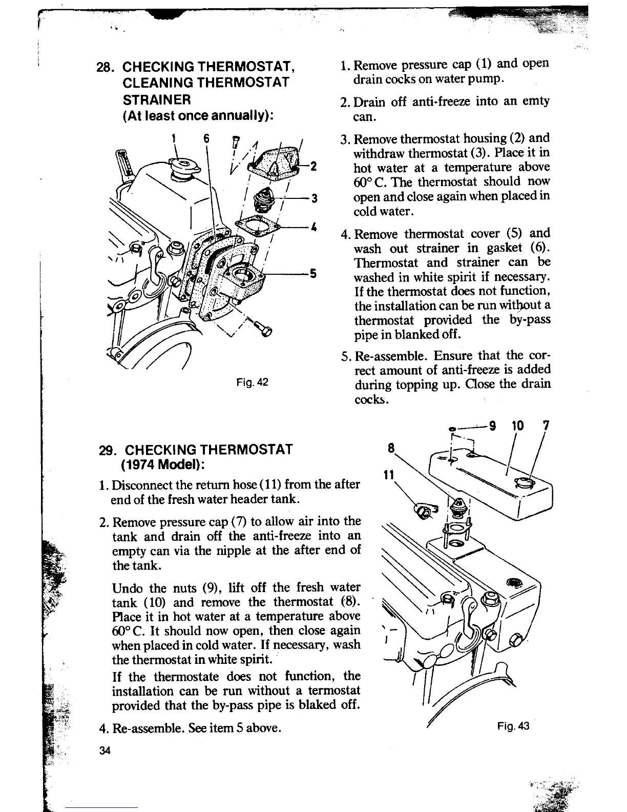 , 28. CHECKING THERMOSTAT, 1. Remove pressure cap (1) and open